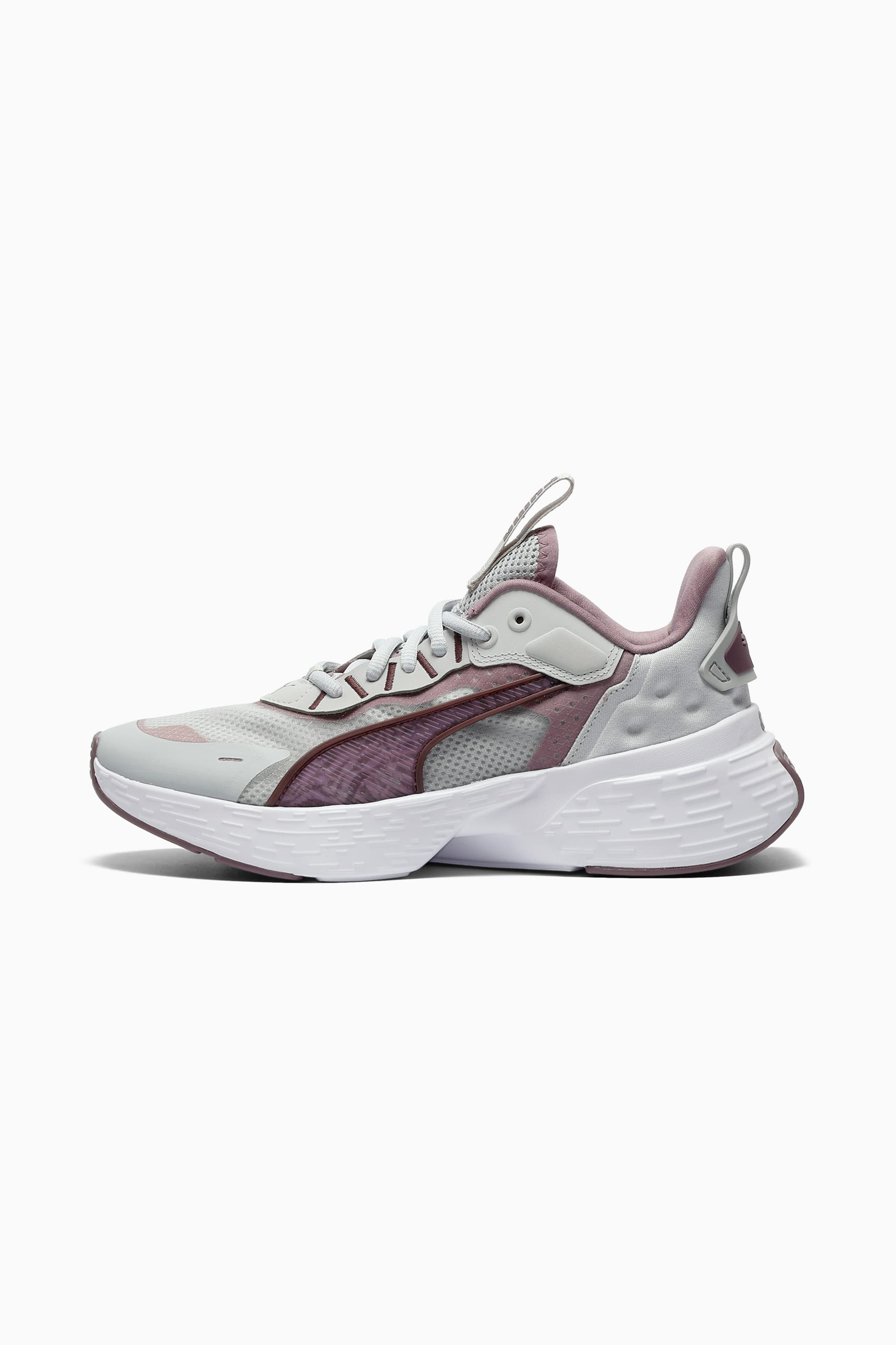 PRODUCT STORY Puma SOFTRIDE Sway features PUMA's proprietary SOFTRIDE EVA technology to offer all-day cushioning on a feminine upper that uses layered materials to create a style that's bold, active, and 100% you. DETAILS - Style: 313311_01 - Color: Cool Light Gray-Raisin-Plum Jam - Regular fit - Rounded toe - Fastener: Laces MATERIAL INFORMATION - Midsole: 100% Synthetic - Sockliner: 100% Textile - Outsole: 57.20% Synthetic, 42.80% Rubber - Upper: 55.49% Textile, 44.51% Synthetic - Lining: 100% Textile