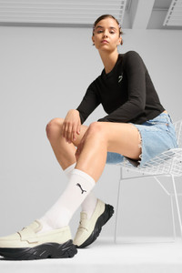PRODUCT STORY The Sophyr made a name for itself by combining a street-smart upper with a hiking-inspired outsole and bringing the runway to the great outdoors. Now, the Sophyr Loafer is here to change the game, again. Premium leather and a mesh lining combine for all-day comfort, while the trail-inspired rugged outsole lets you conquer city streets. Make a statement with every step thanks to the PUMA Cat cut-out on the strap. For the stylish urban explorer, this loafer is adventure redefined. FEATURES & BENEFITS - PUMA's leather products support responsible manufacturing via the Leather Working Group: www.leatherworkinggroup.com DETAILS - Style: 397730_02 - Color: Alpine Snow-PUMA Black - Regular fit - Matte leather upper - Mesh lining; Lycra® heel and tongue binding with padding - EVA midsole - Rugged rubber outsole - 3D modelled mesh sockliner with screen-printed PUMA branding - PUMA Cat cut-out on strap - Debossed and foil printed PUMA Cat on heel MATERIAL INFORMATION - Sockliner: 100% Textile - Outsole: 100% TR (Thermoplastic Rubber) - Upper: 95.13% Leather - cow, 4.87% Textile - Lining: 100% Textile