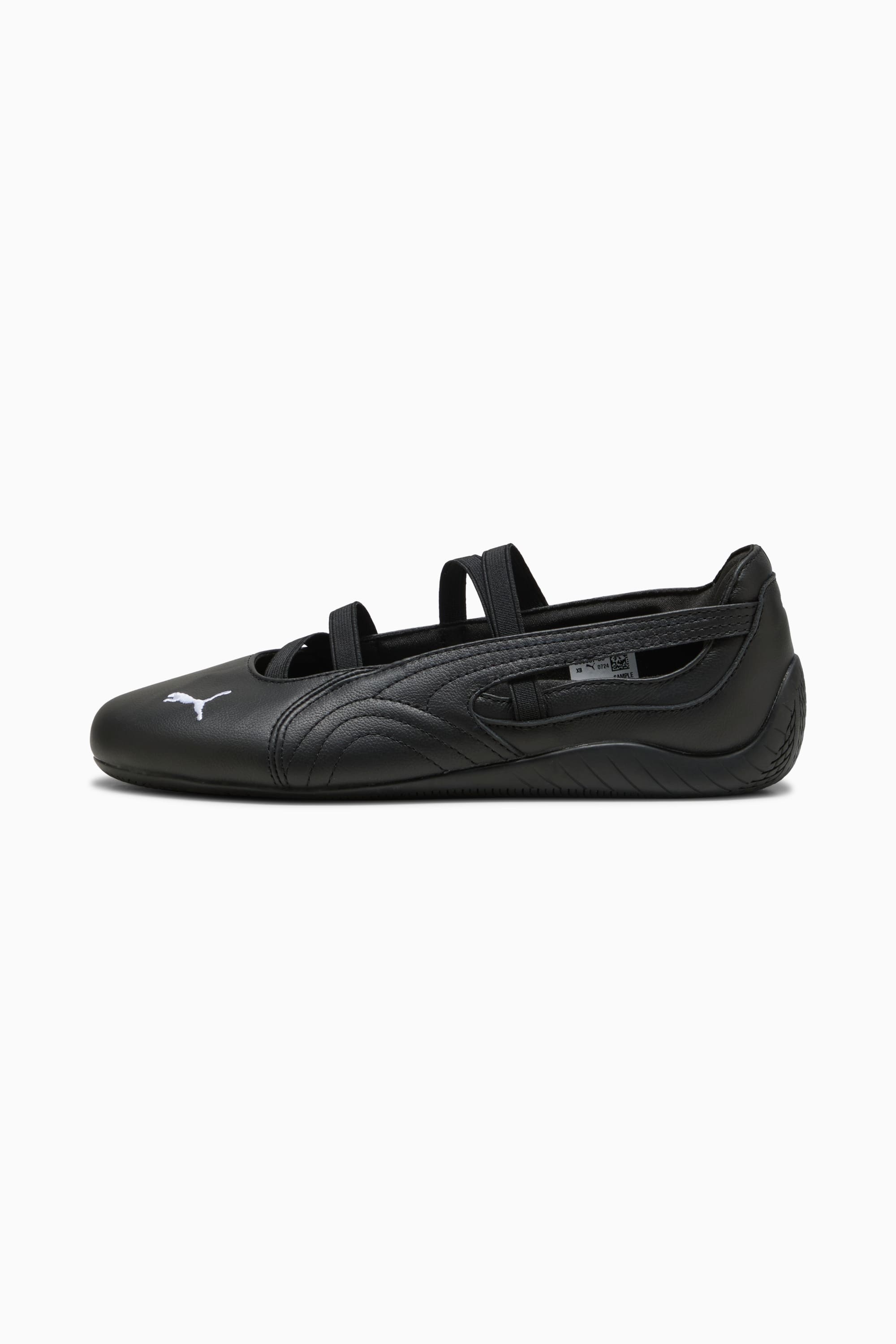 PRODUCT STORY A PUMA classic inspired by the speed of the racetrack: the Speedcat. It stands out from the crowd with its race-shoe inspired shape and sleek lines that look fast and bold. Bring motorsport to the street and own the low profile trend with this new version of the iconic silhouette. Merging ballet elegance with that original racing DNA, the Speedcat Ballet features a leather upper, embroidered PUMA cat, and elastic bands for a snug fit. DETAILS - Style: 403587_03 - Color: PUMA Black-PUMA White - Regular width - Leather upper - Elastic bands on instep - Textile OrthoLite® sockliner - Rubber outsole wrapping the heel - PUMA branding details MATERIAL INFORMATION - Sockliner: 100% Textile - Outsole: 100% Rubber - Upper: 81.11% Leather - cow, 18.89% Textile - Lining: 100% Textile