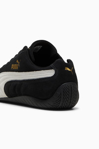 PRODUCT STORY An icon of racing culture, the PUMA Speedcat has been synonymous with speed, precision, and unparalleled performance for over 25 years. It originated as a fireproof Formula 1® footwear style, but over the decades it found itself on a new circuit – transcending the tracks of Monaco for the streets of global fashion capitals. Wrapped in soft suede and premium leather, this silhouette is reissued in its original red and black colorways with a new PUMA Cat Logo at the front. FEATURES & BENEFITS - IMEVA: PUMA's material for a lightweight and comfortable feel - PUMA's leather products support responsible manufacturing via the Leather Working Group. www.leatherworkinggroup.com DETAILS - Style: 400986_01 - Color: PUMA Black-PUMA White - Leather upper - Rubber midsole - Rubber outsole - Suede PUMA Formstrip - PUMA Cat embroidered on the toe