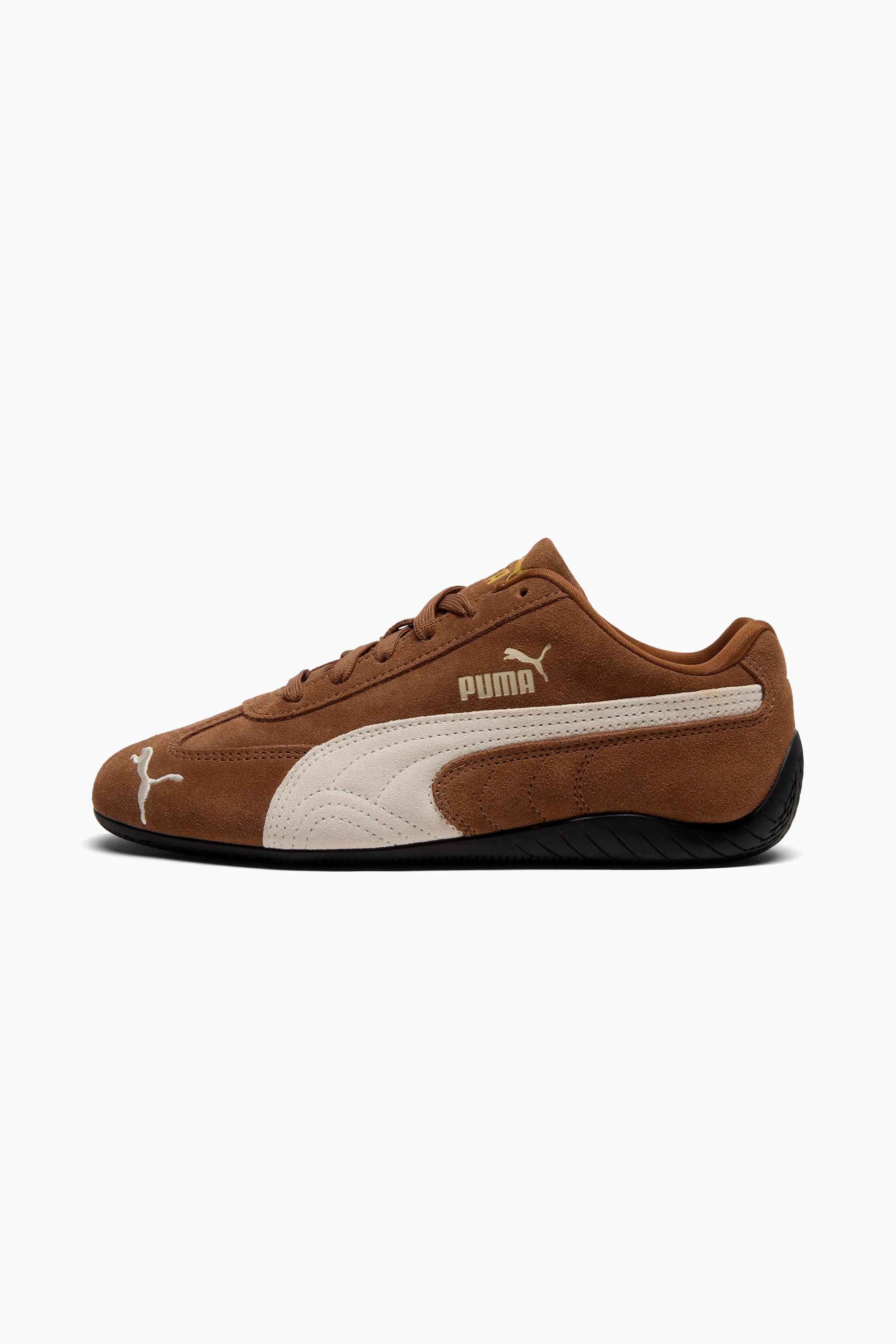 PRODUCT STORY An icon of racing culture, the PUMA Speedcat has been synonymous with speed, precision, and unparalleled performance for over 25 years. It originated as a fireproof Formula 1® footwear style, but over the decades it found itself on a new circuit – transcending the tracks of Monaco for the streets of global fashion capitals. Wrapped in soft suede and premium leather, this silhouette is reissued in its original red and black colorways with a new PUMA Cat Logo at the front. FEATURES & BENEFITS - IMEVA: PUMA's material for a lightweight and comfortable feel - PUMA's leather products support responsible manufacturing via the Leather Working Group. www.leatherworkinggroup.com DETAILS - Style: 400986_31 - Color: Haute Coffee-Frosted Ivory - Leather upper - Rubber midsole - Rubber outsole - Suede PUMA Formstrip - PUMA Cat embroidered on the toe