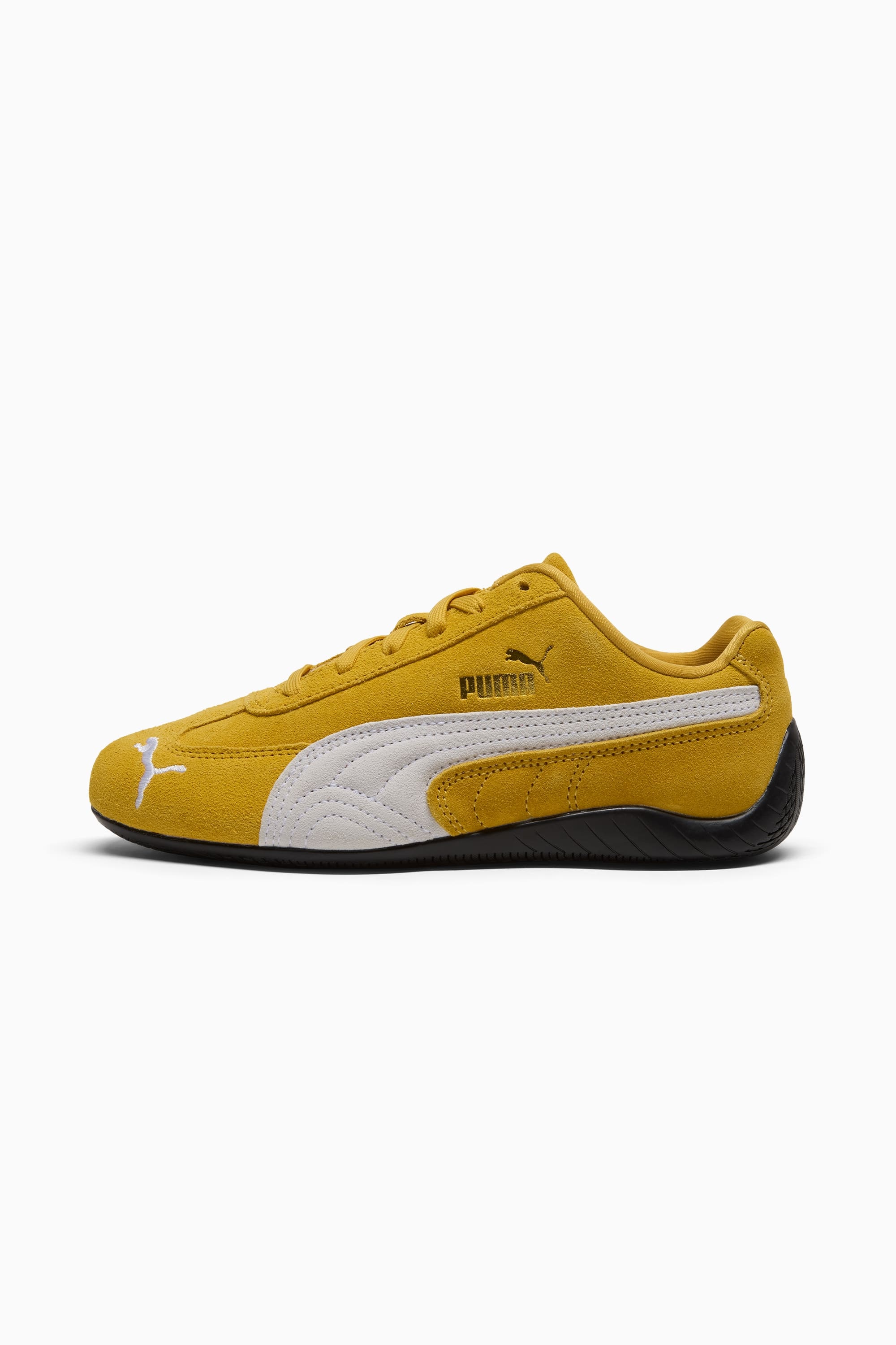 PRODUCT STORY An icon of racing culture, the PUMA Speedcat has been synonymous with speed, precision, and unparalleled performance for over 25 years. It originated as a fireproof Formula 1® footwear style, but over the decades it found itself on a new circuit – transcending the tracks of Monaco for the streets of global fashion capitals. Wrapped in soft suede and premium leather, this silhouette is reissued in its original red and black colorways with a new PUMA Cat Logo at the front. FEATURES & BENEFITS - IMEVA: PUMA's material for a lightweight and comfortable feel - PUMA's leather products support responsible manufacturing via the Leather Working Group. www.leatherworkinggroup.com DETAILS - Style: 400986_06 - Color: Archive Gold-PUMA White - Leather upper - Rubber midsole - Rubber outsole - Suede PUMA Formstrip - PUMA Cat embroidered on the toe