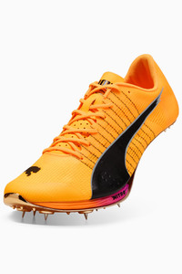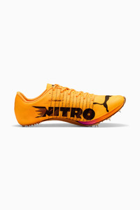 PRODUCT STORY Dominate the track with explosive speed. Powered by NITROFOAM™ ELITE cushioning and a carbon fiber PWRPLATE for maximum propulsion, these lightweight spikes feature ULTRAWEAVE ELITE for a secure fit and full-length PEBAX for ultimate grip. Built to propel you across the finish line faster. FEATURES & BENEFITS - NITROFOAM™ Elite: Premium performance foam technology that provides pinnacle responsiveness in an extremely lightweight package - PWRPLATE: Carbon fibre plate engineered to stabilise the midsole while maximising energy transfer DETAILS - Style: 311853_01 - Color: Sun Stream-Pure Magenta-PUMA Black - Width: Regular - Toe Type: Rounded - Fastener: Laces - Main material of upper: Textile - Surface type: track - Shoe weight: 169g (size UK8) - 8 permanent pins - Pronation: Neutral MATERIAL INFORMATION - Midsole: 100% Synthetic - Sockliner: 100% Textile - Outsole: 100% Synthetic - Upper: 56% Textile, 44% Synthetic - Lining: 100% Textile
