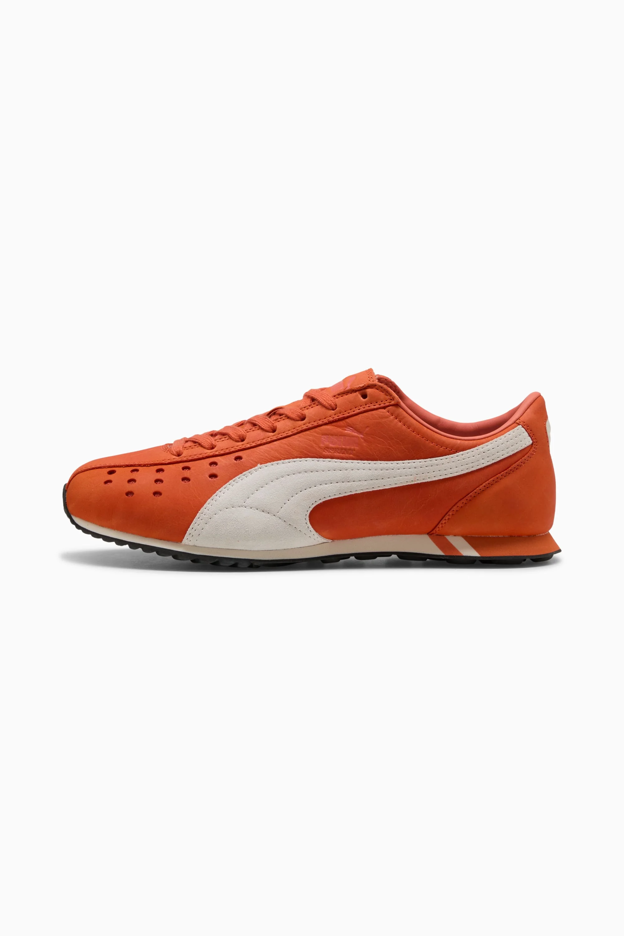 PRODUCT STORY The PUMA Sprint was born in the 2000s as a running shoe and hasn't slowed down since. Today we're bringing this running icon out of the archives and into the streets. DETAILS - Style: 405084_03 - Color: Chili Powder-PUMA White - Width: Regular - Toe Type: Rounded - Fastener: Laces - Heel type: Flat - Moulded footbed MATERIAL INFORMATION - Midsole: 100% Synthetic - Sockliner: 100% Textile - Outsole: 100% Rubber - Upper: 98.31% Leather - cow, 1.69% Synthetic - Lining: 100% Synthetic