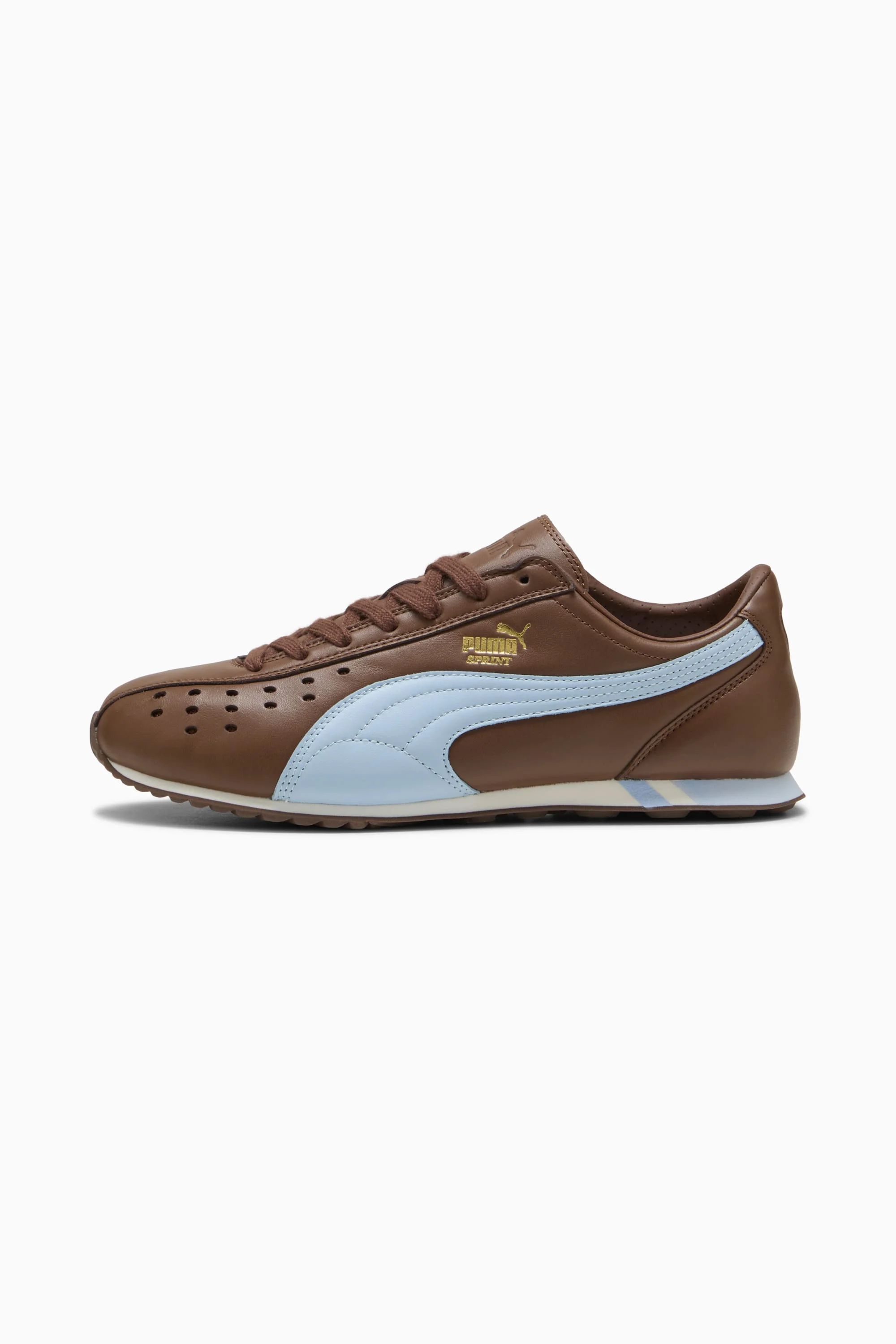 PRODUCT STORY The PUMA Sprint was born in the 2000s as a running shoe and hasn't slowed down since. Today we're bringing this running icon out of the archives and into the streets. DETAILS - Style: 402960_09 - Color: Russet Brown-Haute Tropic - Width: Regular - Toe Type: Rounded - Fastener: Laces - Heel type: Flat - Moulded footbed MATERIAL INFORMATION - Midsole: 100% Synthetic - Sockliner: 100% Textile - Outsole: 100% Rubber - Upper: 98.22% Leather - cow, 1.78% Synthetic - Lining: 100% Synthetic
