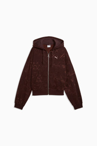 PRODUCT STORY PUMA's collection of Graphic apparel blends creative graphics with simple style, creating comfortable pieces that make a statement. From abstract patterns to iconic logos, each design elevates your look with effortless cool. FEATURES & BENEFITS - Made with at least 50% recycled materials. DETAILS - Style: 637064_13 - Color: Chocolate Brown - Fit: Oversized - Main material type: Fleece - Hooded - Long sleeves - Fastener: Full zip - Length: Short - Pockets: Kangaroo pocket - Embroidered PUMA Cat logo MATERIAL INFORMATION - Hood Lining: 100% cotton - Shell: 66% cotton, 34% polyester - Rib: 97% cotton, 3% elastane
