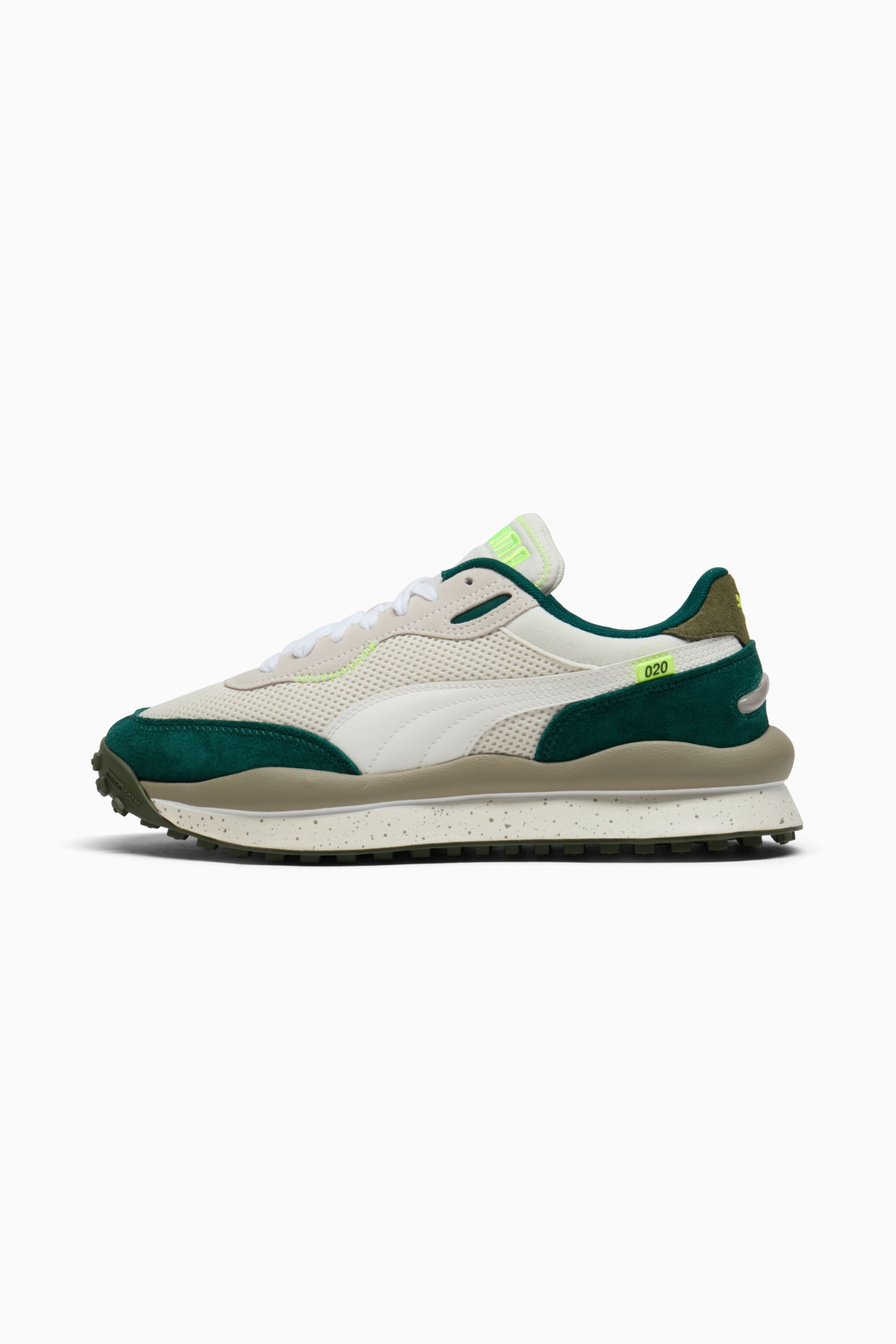 PRODUCT STORY Vintage vibes meet modern flair with PUMA's latest kicks, Style Rider Mix. Featuring a textile upper, suede and synthetic overlays, and TPU Gel details, these sneakers are all about bold style. Zig-zag stitching and Federbein outsole complete the look, making every step an adventure. DETAILS - Style: 403528_01 - Color: Warm White-Alpine Snow-Velvet Moss - Low boot - Lace closure - Regular fit - Rubber outsole - PUMA branding details MATERIAL INFORMATION - Midsole: 100% Synthetic - Sockliner: 100% Textile - Outsole: 100% Rubber - Upper: 51% Leather - cow, 29% Textile, 20% Synthetic - Lining: 100% Textile