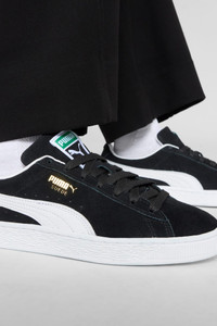 PRODUCT STORY The Suede hit the scene in 1968 and has been changing the game ever since. It's been worn by icons of every generation, and it's stayed classic through it all. Instantly recognisable and constantly reinvented, Suede's legacy continues to grow and be legitimised by the authentic and expressive individuals that embrace the iconic shoe. This latest rendition is outfitted with new details and premium materials for a fresh look. FEATURES & BENEFITS - PUMA’s leather products support responsible manufacturing via the Leather Working Group. www.leatherworkinggroup.com DETAILS - Style: 400775_01 - Color: Puma Black-Puma White - Low boot - Lace closure - Regular fit - Suede leather heel overlay - Synthetic leather lining - Rubber outsole - Rubber midsole - PUMA branding details MATERIAL INFORMATION - Sockliner: 100% Textile - Outsole: 100% Rubber - Upper: 97.26% Leather - cow, 2.74% Synthetic - Lining: 72.44% Textile, 27.56% Synthetic
