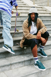 PRODUCT STORY This larger-than-life remix of the iconic Suede Classic has been blazing its own path. The Suede XL draws from PUMA's Y2K-inspired styles while retaining classic Suede DNA. But there's a twist. With its extra padding, extra-large tongue, and extra-thick laces, Suede XL maximizes everything. This sneaker is the perfect mix of understated and elevated. FEATURES & BENEFITS - PUMA’s leather products support responsible manufacturing via the Leather Working Group.www.leatherworkinggroup.com DETAILS - Style: 395205_21 - Color: Dark Myrtle-Warm White - Suede upper - Leather Formstrip - Suede tongue with mesh binding - Debossed and foil-printed PUMA branding on quarter panel - Mesh lining - Mesh sockliner - Rubber midsole - Rubber outsole MATERIAL INFORMATION - Sockliner: 100% Textile - Outsole: 100% Rubber - Upper: 97.21% Leather - cow, 2.79% Synthetic - Lining: 62.81% Textile, 37.19% Synthetic