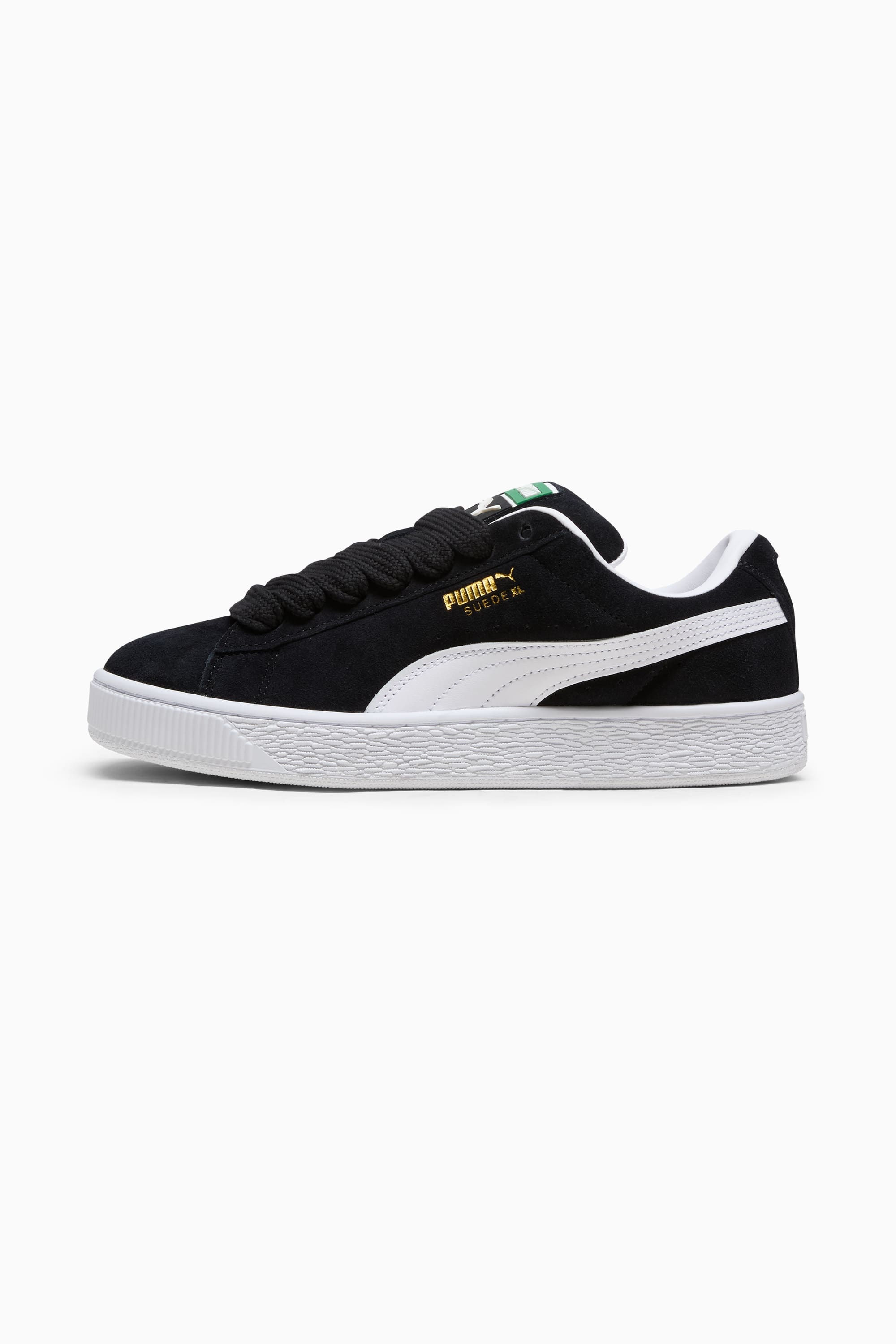 PRODUCT STORY This larger-than-life remix of the iconic Suede Classic has been blazing its own path. The Suede XL draws from PUMA's Y2K-inspired styles while retaining classic Suede DNA. But there's a twist. With its extra padding, extra-large tongue, and extra-thick laces, Suede XL maximizes everything. This sneaker is the perfect mix of understated and elevated. FEATURES & BENEFITS - PUMA’s leather products support responsible manufacturing via the Leather Working Group.www.leatherworkinggroup.com DETAILS - Style: 397648_02 - Color: PUMA Black-PUMA White - Regular fit - Suede upper - Mesh insole with multiple screen-printed PUMA logo - Suede tongue with mesh trim - CPU Part Tab Label - Mesh lining - Rubber midsole - Rubber outsole MATERIAL INFORMATION - Sockliner: 100% Textile - Outsole: 100% Rubber - Upper: 97.19% Leather - cow, 2.81% Synthetic - Lining: 100% Synthetic