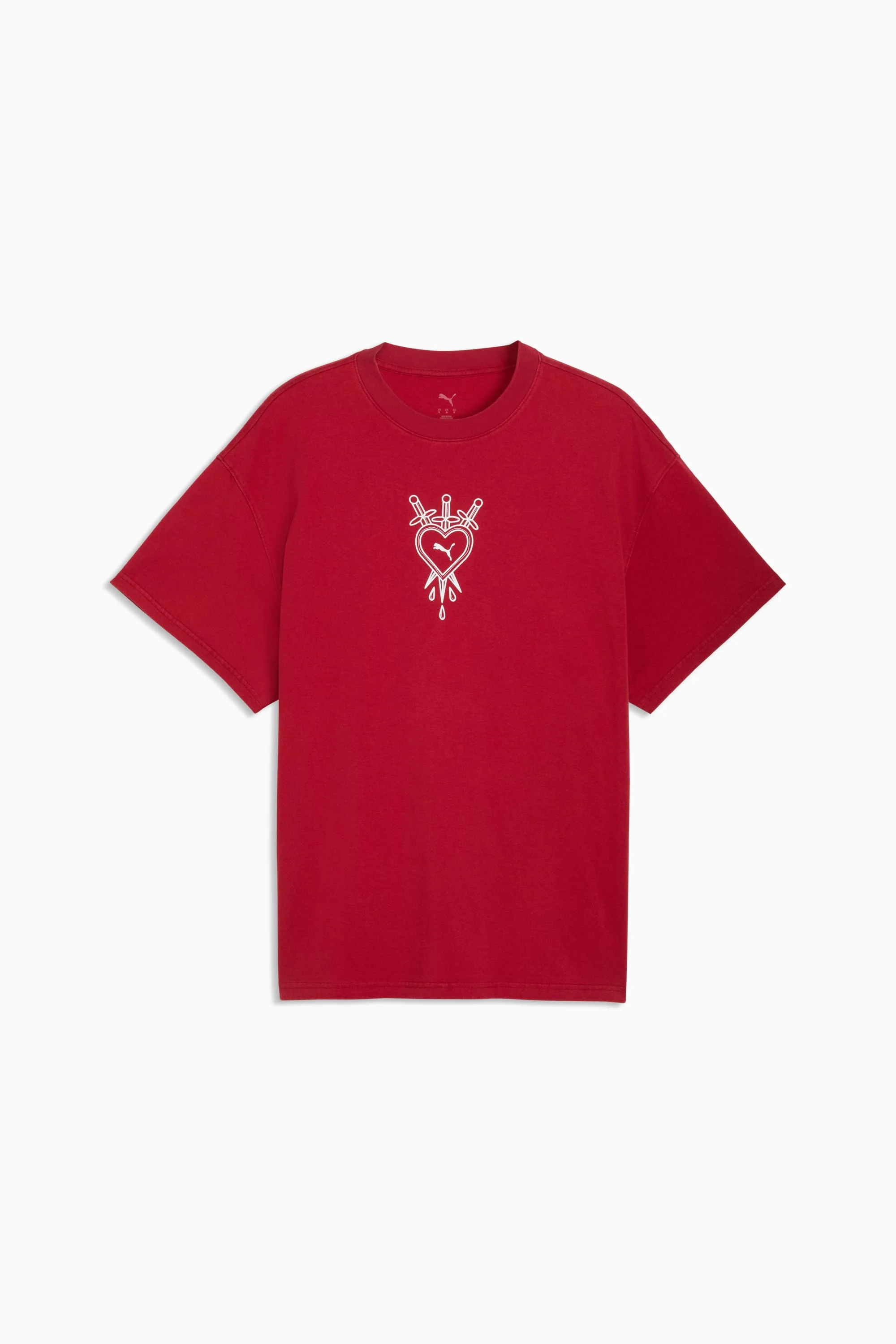 PRODUCT STORY Step into the world of Swish and Ink - a basketball collection that fuses bold, ink-inspired graphics with game-ready style. From roses and script to illustrated motifs, each piece is crafted for players who bring art and attitude to every move. FEATURES & BENEFITS - Made with at least 20% recycled cotton. DETAILS - Style: 634661_02 - Color: Dark Crimson - Fit: Oversized - Main material type: Single jersey - Neck: Crew neck - Short sleeves - Length: Regular MATERIAL INFORMATION - Shell: 100% cotton - Rib: 70% cotton, 30% polyester