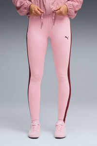 PRODUCT STORY Rock the iconic T7 stripe with these form-fitting leggings. Featuring an embroidered PUMA Cat logo and a sleek silhouette, they're perfect for everything from gym workouts to casual outings. Made with soft jersey fabric for all-day comfort, these tights bring classic PUMA style to your everyday wardrobe. FEATURES & BENEFITS - Made with at least 50% recycled materials DETAILS - Style: 633617_65 - Color: Poised Pink-Ruby Shimmer - Fit: Tight - Main Material: Single jersey - Rise: High MATERIAL INFORMATION - Gusset: 89% polyester, 11% elastane - Inserts: 89% polyester, 11% elastane - Shell: 89% polyester, 11% elastane