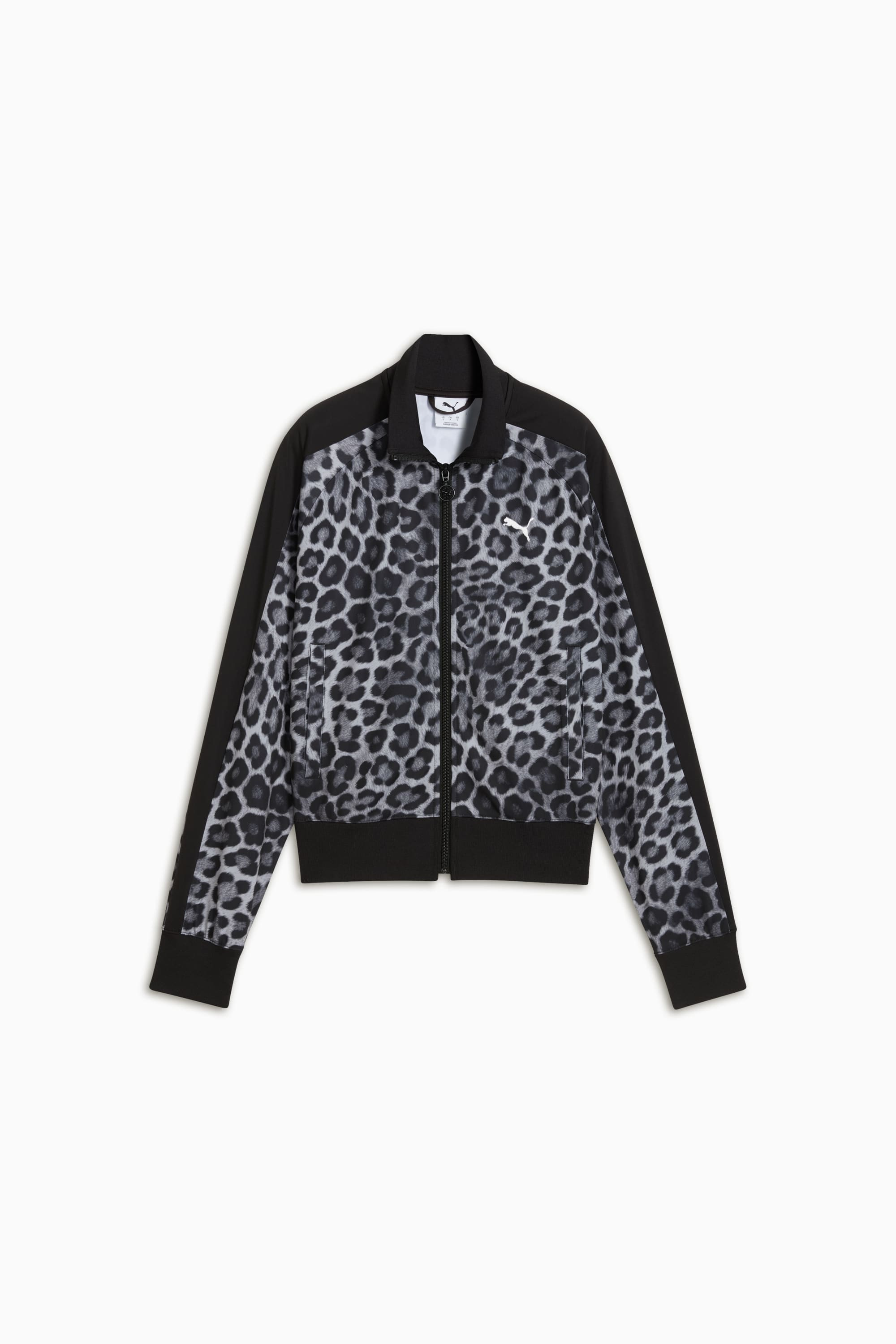 PRODUCT STORY Unleash your wild side with PUMA's track jacket, featuring an all-over leopard print, T7 panel inserts, and a two-way zipper. Ribbed hem and cuffs ensure a snug fit, while the embroidered PUMA Cat logo adds a touch of authenticity. DETAILS - Style: 632342_01 - Color: PUMA Black - Regular fit - Tricot - Short jacket length - Stand up collar - Full zip - Long sleeves - PUMA branding details MATERIAL INFORMATION - Shell: 100% polyester - Rib: 97% polyester, 3% elastane