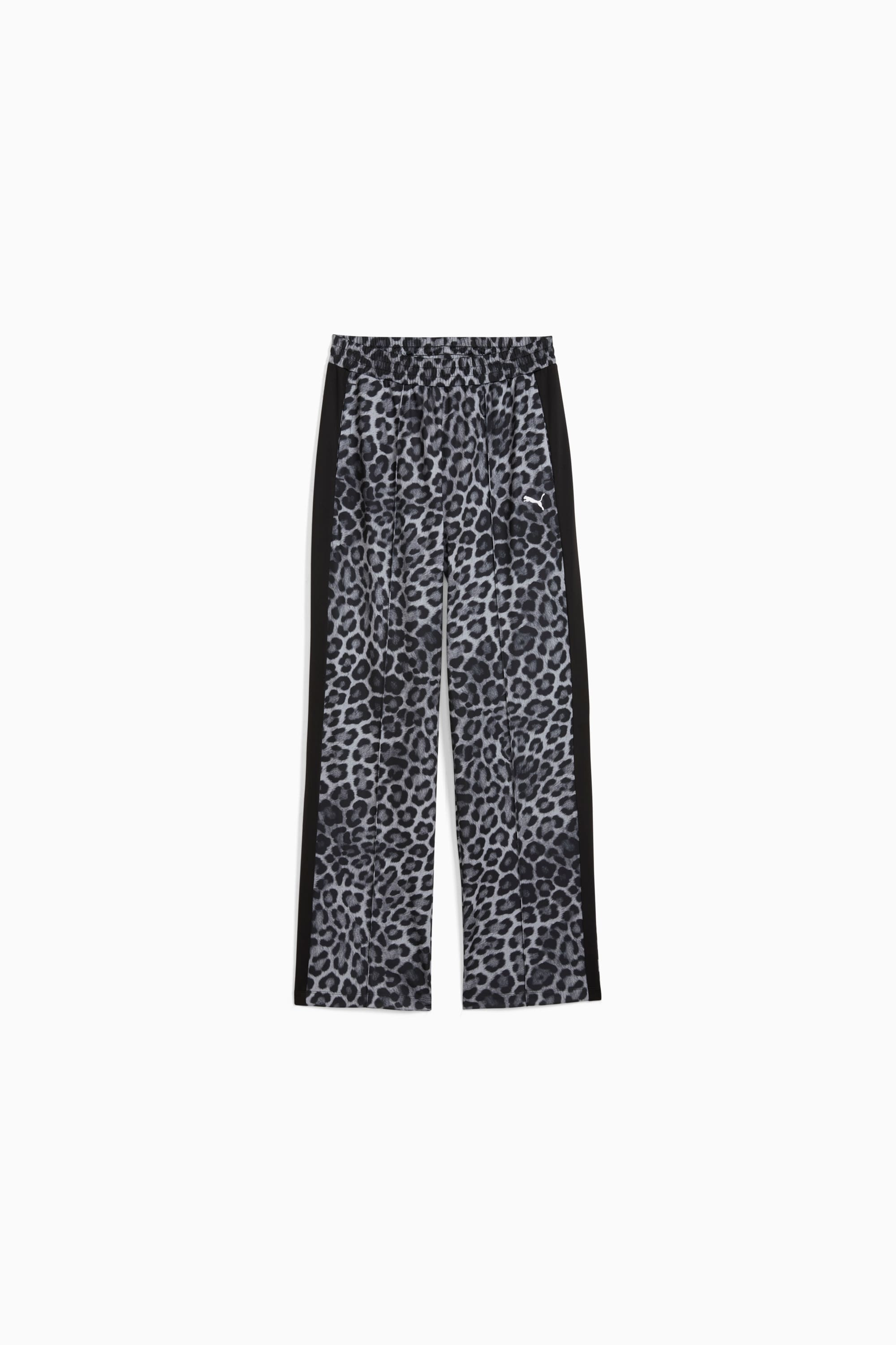 PRODUCT STORY Step into the wild with PUMA's leopard-print track pants. Featuring T7 panel inserts, rib waistband with internal drawcords, and Cat Logo embroidery, these pants are designed for those who dare to stand out. Unleash your inner feline and make a statement! DETAILS - Style: 632343_01 - Color: PUMA Black - Comfort fit - Tricot - Regular length - Medium rise - Seam Pocket - PUMA branding details MATERIAL INFORMATION - Shell: 100% polyester