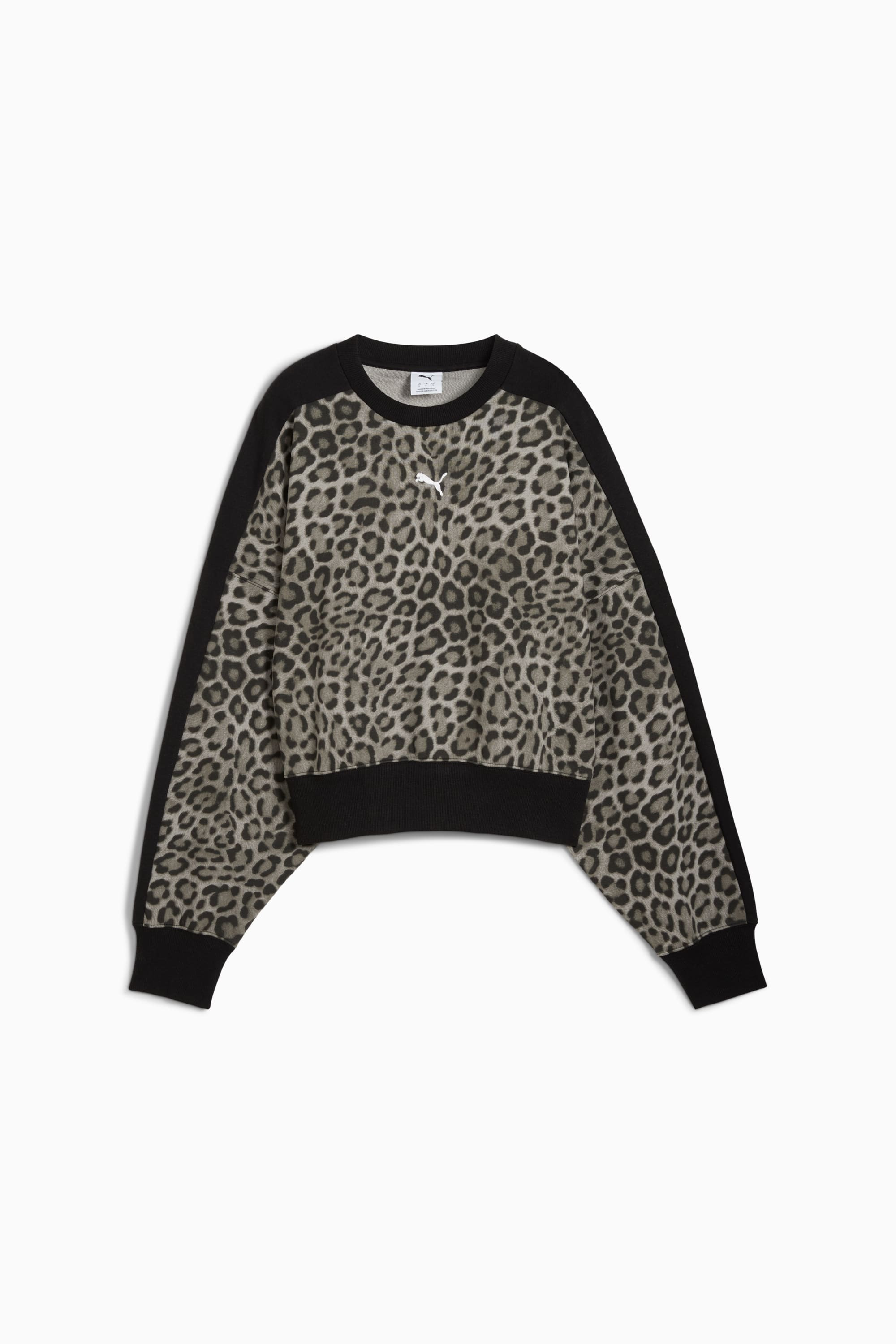 PRODUCT STORY The T7 tracksuit first debuted in 1968 and has been redefining style ever since. Today, it remains a timeless streetwear essential, instantly recognizable for its classic cutlines, tapered side panels, and PUMA branding. Now it's back with modern updates and refined details—blending heritage with fresh energy for a new generation. FEATURES & BENEFITS - Made with at least 50% recycled materials. DETAILS - Style: 632136_01 - Color: PUMA Black - Fit: Oversized - Main Material: Pique - Neck: Ribbed crew neck - Long sleeves - Ribbed cuffs and waistband - Length: Short - Signature PUMA T7 (7cm) stripes on the sleeves - All-over animal print MATERIAL INFORMATION - Shell: 68% cotton, 32% polyester - Rib: 97% cotton, 3% elastane
