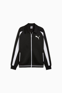 PRODUCT STORY The T7 tracksuit made its debut in 1968 and has been changing the game ever since. With its signature side panels, clean cutlines, and unmistakable PUMA DNA, the T7 has achieved icon status. This season we've amplified the classic with a bold colour palette and a range of relaxed and cropped fits. This track jacket features an oversized PUMA Cat Logo for extra attitude. FEATURES & BENEFITS - Made with at least 50% recycled materials. DETAILS - Style: 634400_01 - Color: PUMA Black - Fit: Relaxed - Main material type: Spacer - Neck: Collar - Long sleeves - Closure: Full zip - Length: Standard jacket MATERIAL INFORMATION - Upper Pocket Bag: 100% cotton - Shell: 67% polyester, 33% cotton - Lower Pocket Bag: 67% polyester, 33% cotton - Rib: 98% polyester, 2% elastane