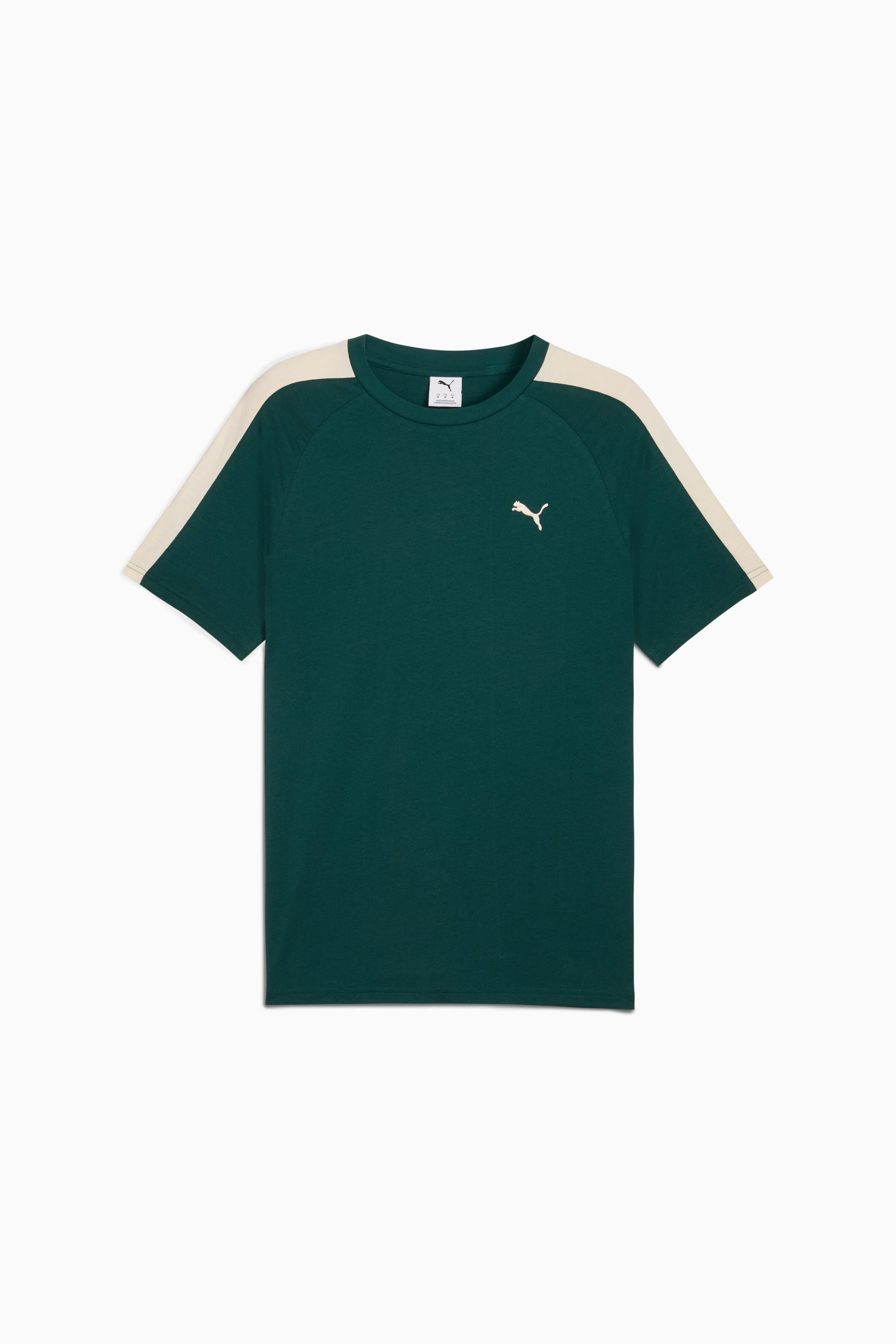 PRODUCT STORY Embrace the House of Graphics with this tee. Featuring T7 panel inserts and the iconic PUMA Cat logo, it's designed for those who love to stand out. Perfect for adding a touch of sporty style to your everyday look. FEATURES & BENEFITS - Made with at least 20% recycled cotton DETAILS - Style: 629592_75 - Color: Green Terrain-Alpine snow - Regular fit - Single jersey fabric - Regular length - Crew neck - Short sleeves - PUMA branding details MATERIAL INFORMATION - Shell: 100% cotton - Rib: 80% cotton, 20% polyester