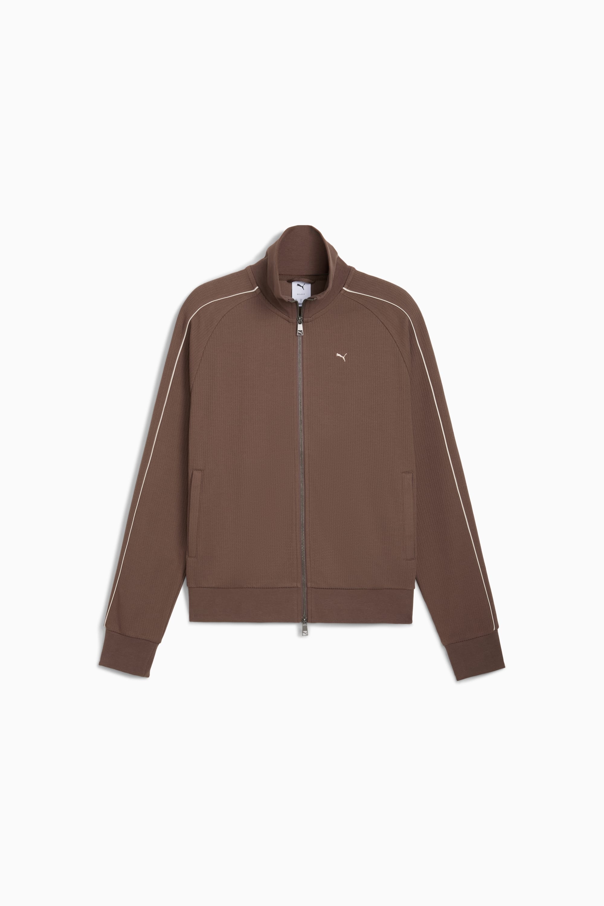 PRODUCT STORY The T7 tracksuit first debuted in 1968 and has been redefining style ever since. Today, it remains a timeless streetwear essential, instantly recognizable for its classic design, tapered side panels, and PUMA branding. Now it's back with modern updates and refined details—combining heritage with fresh energy for a new generation. FEATURES & BENEFITS - Made with at least 30% recycled materials. DETAILS - Style: 632327_41 - Color: Flat Bronze - Fit: Relaxed - Main Material: Pique - Neck: Stand up collar - Long sleeves - Fastener: Full zip with two-way zip - Length: Regular - Ribbed collar, cuffs and hem - Pockets: Zipped side pockets - Signature PUMA T7 (7cm) stripes MATERIAL INFORMATION - Shell: 50% cotton, 47% polyester, 3% elastane - Pocket Bag: 100% cotton - Rib: 96% cotton, 4% elastane