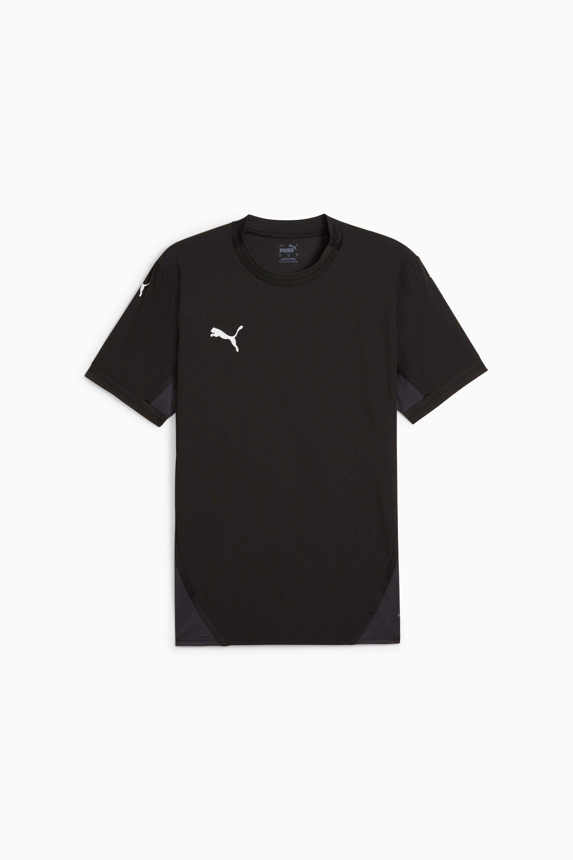 PRODUCT STORY Meet the next generation of PUMA Soccer. As seen on PUMA Soccer's top clubs, this slim-fit soccer jersey is constructed for the highest level of performance using a light, breathable, highly engineered fabric and form-fitting cuts that fulfil the needs of the game's very best athletes. FEATURES & BENEFITS - ULTRAWEAVE: Ultra-light, engineered fabric with a structured, 4-way stretch that reduces weight and friction. Built for athletes looking to increase speed and strength - dryCELL: Performance technology designed to wick moisture from the body and keep you free of sweat during exercise DETAILS - Style: 705737_03 - Color: PUMA Black-PUMA White-Flat Dark Gray - Slim fit - Fabric: Dobby - Crew neck - Short sleeves - Regular length - PUMA Cat on both sleeves for maximized visibility - Mesh inserts on side and back - PUMA Cat branding on right chest MATERIAL INFORMATION - BACK BODY: 100% polyester - FRONT BODY: 100% polyester - COLLAR: 100% polyester