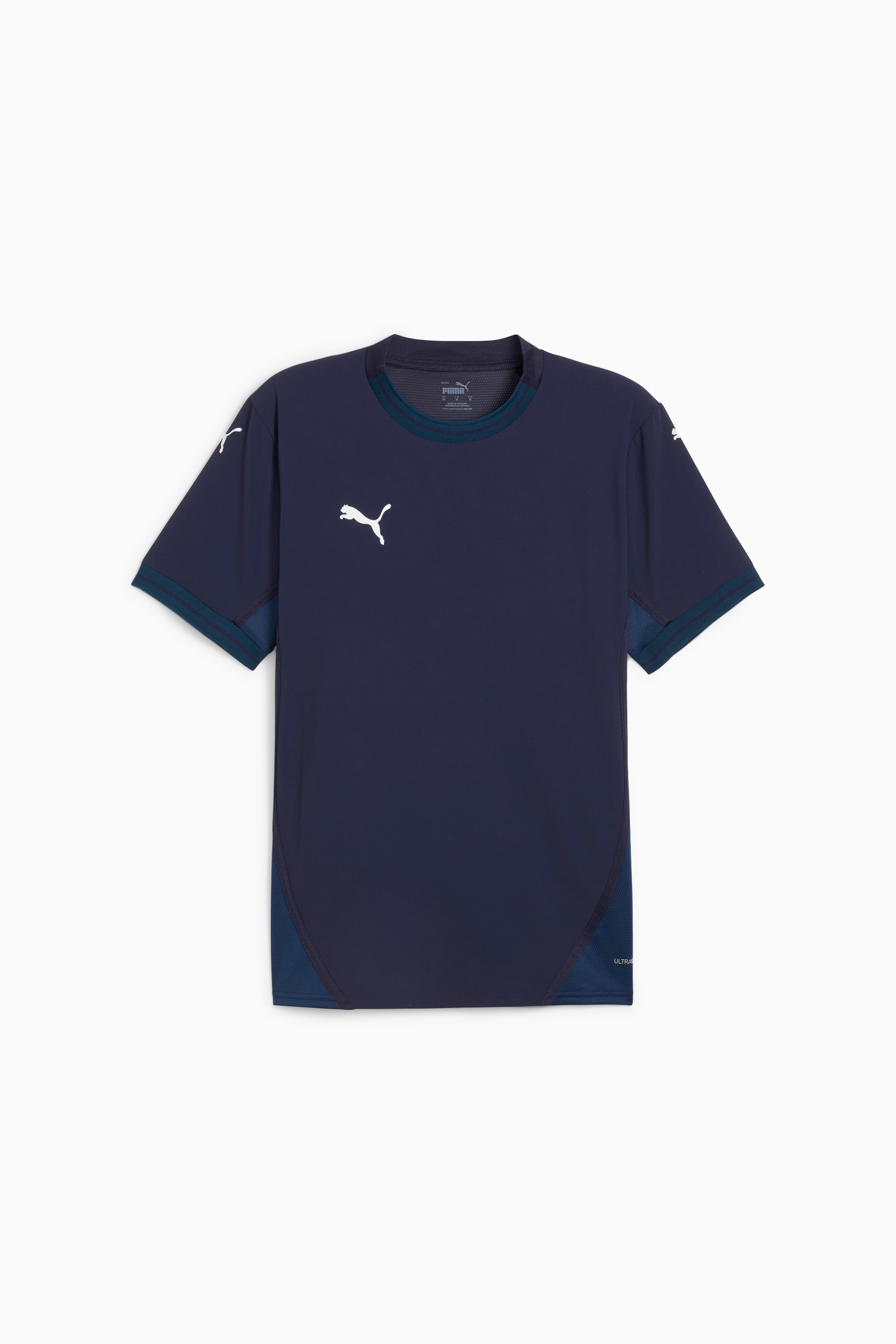 PRODUCT STORY Meet the next generation of PUMA Soccer. As seen on PUMA Soccer's top clubs, this slim-fit soccer jersey is constructed for the highest level of performance using a light, breathable, highly engineered fabric and form-fitting cuts that fulfil the needs of the game's very best athletes. FEATURES & BENEFITS - ULTRAWEAVE: Ultra-light, engineered fabric with a structured, 4-way stretch that reduces weight and friction. Built for athletes looking to increase speed and strength - dryCELL: Performance technology designed to wick moisture from the body and keep you free of sweat during exercise DETAILS - Style: 705737_06 - Color: PUMA Navy-PUMA White-Persian Blue - Slim fit - Fabric: Dobby - Crew neck - Short sleeves - Regular length - PUMA Cat on both sleeves for maximized visibility - Mesh inserts on side and back - PUMA Cat branding on right chest MATERIAL INFORMATION - BACK BODY: 100% polyester - FRONT BODY: 100% polyester - COLLAR: 100% polyester