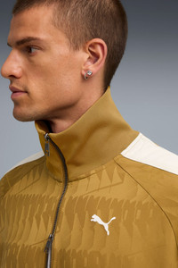 PRODUCT STORY A continuation of the smash-hit "NeverWorn" collection, The NeverWorn VI takes PUMA's history and remixes it for the modern world. This collection is a celebration of our archive and a return to a retro soccer aesthetic with relaxed fits, knits, and new all-over patterns. FEATURES & BENEFITS - Made with at least 90% recycled materials DETAILS - Style: 632509_69 - Color: Honey Butter-AOP - Relaxed fit - Stand up collar neck - Long sleeves - Full zip with 2-way metal zip - Standard jacket length - Elasticated cuffs and hem - Side zip pockets - Signature T7 panels down the sleeves - All-over graphic print MATERIAL INFORMATION - Inserts: 100% polyester - Upper Pocket Bag: 80% polyester, 20% cotton - Shell: 100% polyester - Rib: 90% polyester, 10% elastane