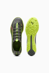 PRODUCT STORY How fast is the ULTRA 5? Fasten your seatbelt. PUMA's newest ULTRA soccer cleats are here. They feature a lightweight mesh upper, PWRTAPE support frame for stability, and GripControl Pro skin for decisive ball command. The low-profile rubber outsole and ProFoam LITE midsole keep you agile on hard surfaces and artificial grass. Play at full throttle. FEATURES & BENEFITS - The upper of the shoe is made with at least 30% recycled materials - PWRTAPE: Carbon fibre plate engineered to stabilise the midsole while maximising energy transfer - SKILL: Textured high-density mesh layer with a GripControl Pro finish for enhanced ball grip and control - STABILITY: PWRTAPE support frame stabilizes the foot inside of the boot to enable rapid changes of direction DETAILS - Style: 108173_03 - Color: Matte Aged Silver-Yellow Alert-Sun Struck - Regular width - Lightweight mesh upper material - Lace closure - Low-profile multi-studded rubber outsole and ProFoam LITE midsole - Ortholite® O-Therm™ aerogel-infused insole blocks out the heat, keeping the foot cool and comfortable - TT: Suitable for use on hard natural surfaces and artificial grass (2G) MATERIAL INFORMATION - Sockliner: 100% Textile - Outsole: 100% Synthetic - Upper: 87.98% Synthetic, 12.02% Textile - Lining: 62.18% Textile, 37.82% Synthetic