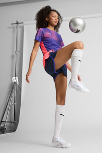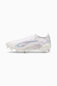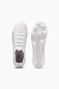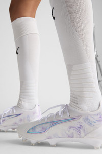 PRODUCT STORY Too fast for them. Just right for you. Introducing ULTRA 5 ULTIMATE Women's Fit. This soccer cleat combines a brand-new SPEEDSYSTEM outsole and a FastTrax stud design with measurements optimised for a women's foot, so you can feel better and play faster than ever before. This version is part of the Brilliance Pack, celebrating the brilliance of the women's game and inspiring the next generation to shine even brighter. FEATURES & BENEFITS - ACCELERATION: The SPEEDSYSTEM outsole design combines a high-performance fibre base material with a revolutionary stud system, maximising energy return for faster acceleration - TRACTION: FastTrax stud design using insights from academic research and traction studies to provide more traction while accelerating, cutting and breaking - STABILITY: PWRTAPE SQD support frame stabilises the foot inside of the boot without hindering agility or freedom of movement DETAILS - Style: 108178_01 - Color: PUMA White-PUMA Black-Spring Lavender - Lightweight mesh upper - Lightweight removable sockliner with NanoGrip technology keeps the foot from slipping inside the boot - OrthoLite® heel cushioning for better lockdown - GripControl Pro skin: Super-thin textured skin designed for improved ball control no matter the pitch conditions - SPEEDSYSTEM outsole - Women's Fit: This football boot is made for women, with measurements such as volume and instep height engineered for the female foot - Low-cut slip-on construction - FG: Suitable for use on firm ground MATERIAL INFORMATION - Sockliner: 100% Synthetic - Outsole: 100% Synthetic - Upper: 86.62% Synthetic, 13.38% Textile - Lining: 79.50% Textile, 20.50% Synthetic