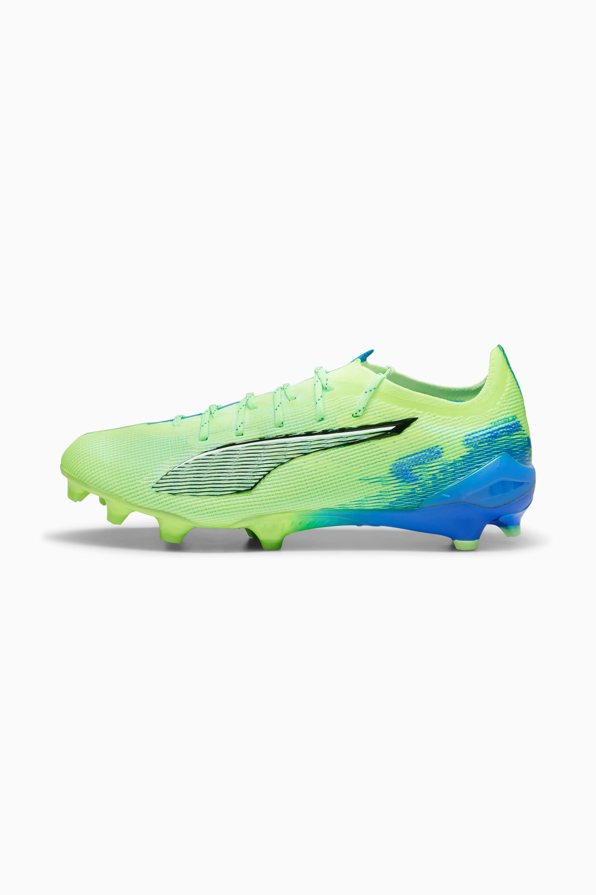 PRODUCT STORY Fasten your seatb. . .we mean laces. With the new ULTRA, you get the speed and sensation of a finely tuned machine at your feet. Featuring the brand-new SPEEDSYSTEM outsole and FastTrax stud design, precision-engineered to take you from kick-off to back of the net faster than you can say "Lights out". Play at full throttle. FEATURES & BENEFITS - ACCELERATION: The SPEEDSYSTEM outsole design combines a high-performance fibre base material with a revolutionary stud system, maximising energy return for faster acceleration - TRACTION: FastTrax stud design using insights from academic research and traction studies to provide more traction while accelerating, cutting and breaking - STABILITY: PWRTAPE SQD support frame stabilises the foot inside the boot without hindering agility or freedom of movement - The upper of this shoe is made with at least 50% recycled materials DETAILS - Style: 107683_03 - Color: Fizzy Apple-PUMA White-Bluemazing - Lightweight mesh upper - Lightweight removable sockliner with NanoGrip technology keeps the foot from slipping inside the boot - OrthoLite® heel cushioning for better lockdown - SPEEDSYSTEM outsole - Regular to narrow fit - Low-cut slip-on construction - FG: Suitable for use on firm ground MATERIAL INFORMATION - Sockliner: 100% Textile - Outsole: 100% Synthetic - Upper: 86.62% Synthetic, 13.38% Textile - Lining: 79.50% Textile, 20.50% Synthetic