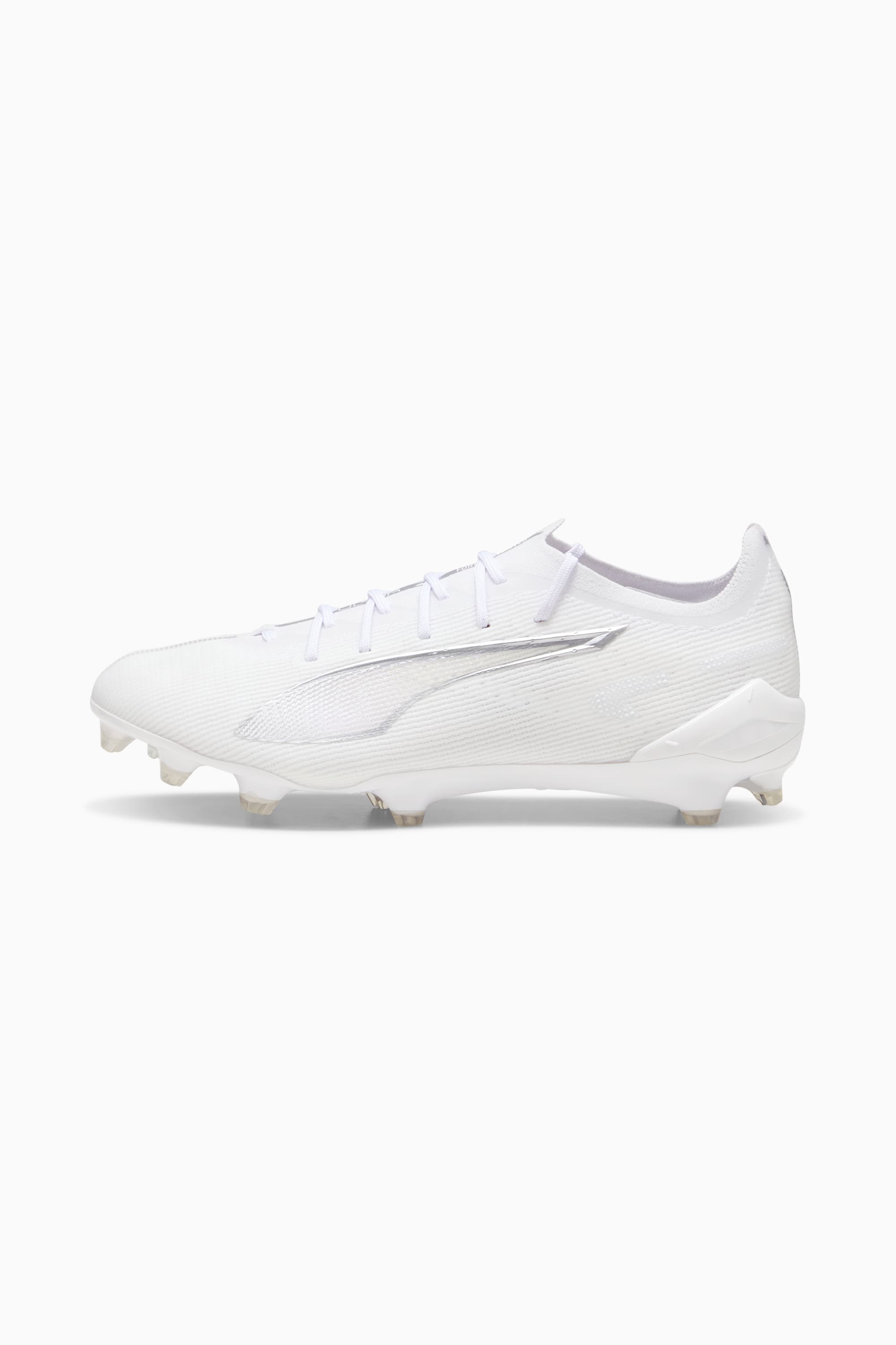 PRODUCT STORY Fasten your seatb. . .we mean laces. With the new ULTRA, you get the speed and sensation of a finely tuned machine at your feet. Featuring the brand-new SPEEDSYSTEM outsole and FastTrax stud design, precision-engineered to take you from kick-off to back of the net faster than you can say "Lights out". Play at full throttle. FEATURES & BENEFITS - ACCELERATION: The SPEEDSYSTEM outsole design combines a high-performance fibre base material with a revolutionary stud system, maximising energy return for faster acceleration - TRACTION: FastTrax stud design using insights from academic research and traction studies to provide more traction while accelerating, cutting and breaking - STABILITY: PWRTAPE SQD support frame stabilises the foot inside the boot without hindering agility or freedom of movement - The upper of this shoe is made with at least 50% recycled materials DETAILS - Style: 107683_04 - Color: PUMA White-PUMA White - Lightweight mesh upper - Lightweight removable sockliner with NanoGrip technology keeps the foot from slipping inside the boot - OrthoLite® heel cushioning for better lockdown - SPEEDSYSTEM outsole - Regular to narrow fit - Low-cut slip-on construction - FG: Suitable for use on firm ground MATERIAL INFORMATION - Sockliner: 100% Textile - Outsole: 100% Synthetic - Upper: 86.62% Synthetic, 13.38% Textile - Lining: 79.50% Textile, 20.50% Synthetic