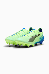 PRODUCT STORY Too fast for them. Just right for you. Introducing the ULTRA 5 ULTIMATE Women's Fit. This soccer cleat combines a brand-new SPEEDSYSTEM outsole and FastTrax stud design with measurements optimised for a women's foot so you can feel better and play faster than ever before. FEATURES & BENEFITS - lightweight outsole and rounded studs - TRACTION: FastTrax stud design using insights from academic research and traction studies to provide more traction while accelerating, cutting and breaking - STABILITY: PWRTAPE SQD support frame stabilizes the foot inside the boot without hindering agility or freedom of movement - The upper of this shoe is made with at least 50% recycled materials DETAILS - Style: 107691_03 - Color: Fizzy Apple-PUMA White-Bluemazing - Lightweight mesh upper - Lightweight removable sockliner with NanoGrip technology keeps the foot from slipping inside the boot - OrthoLite® heel cushioning for better lockdown - SPEEDSYSTEM outsole - Women's Fit: This football boot is made for women, with measurements such as volume and instep height engineered for the female foot - Low-cut slip-on construction - FG: Suitable for use on firm ground MATERIAL INFORMATION - Sockliner: 100% Textile - Outsole: 100% Synthetic - Upper: 86.62% Synthetic, 13.38% Textile - Lining: 79.50% Textile, 20.50% Synthetic