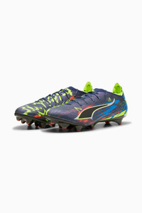 PRODUCT STORY Kick into sixth gear with the ULTRA 6 CARBON. This early release introduces the next evolution in speed, combining cutting-edge ULTRA tech, including the SPEEDSYSTEM CARBON outsole, with bold Y2K-inspired graphics. Set against a dark, atmospheric backdrop, these soccer cleats unleash lethal speed from the testing ground onto the soccer pitch. FEATURES & BENEFITS - ACCELERATION: PUMA’s SPEEDSYSTEM CARBON outsole combines springy carbon-fiber material for rapid propulsion with an innovative stud placement and orientation for faster acceleration - TRACTION: FastTrax stud design uses insights from academic research and traction studies to provide more traction while accelerating, cutting and breaking - STABILITY: PWRTAPE support frame stabilizes the foot inside of the boot without hindering agility and freedom of movement DETAILS - Style: 108754_01 - Color: Persian Blue-Puma Aged Silver-PUMA Black-Lime Squeeze - Ultra-lightweight removable sockliner - Ortholite® heel cushioning for a secure lockdown - GripControl Pro skin for decisive command over the ball - Width: Regular to narrow - Surface: Firm Ground - PUMA branding details MATERIAL INFORMATION - Sockliner: 100% Textile - Outsole: 100% Synthetic - Upper: 88.59% Synthetic, 11.41% Textile - Lining: 65.34% Textile, 34.66% Synthetic