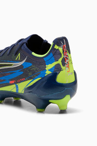 PRODUCT STORY Kick into sixth gear with the ULTRA 6. This early release introduces the next evolution in speed, combining cutting-edge ULTRA tech with bold Y2K-inspired graphics. Set against a dark, atmospheric backdrop, these soccer cleats unleash lethal speed from the testing ground onto the soccer pitch. FEATURES & BENEFITS - ACCELERATION: PUMA’s SPEEDSYSTEM outsole design combines a high-performance fiber base material with an external heel counter and a revolutionary stud system to maximize energy return for faster acceleration - TRACTION: FastTrax stud design uses insights from academic research and traction studies to provide more traction while accelerating, cutting and breaking - STABILITY: PWRTAPE support frame stabilizes the foot inside of the boot without hindering agility and freedom of movement - The upper of the shoes is made with at least 50% recycled materials DETAILS - Style: 108753_01 - Color: Persian Blue-Puma Aged Silver-PUMA Black-Lime Squeeze - Lightweight removable sockliner with Nano Grip technology and Ortholite heel cushioning for better lockdown - GripControl Pro skin for decisive command over the ball - Width: Regular to narrow - Surface: Firm Ground - PUMA branding details MATERIAL INFORMATION - Sockliner: 100% Synthetic - Outsole: 100% Synthetic - Upper: 86.82% Synthetic, 13.18% Textile - Lining: 76.16% Textile, 23.84% Synthetic