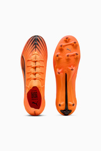PRODUCT STORY Kick into sixth gear with the ULTRA 6. Back with an updated, engineered mesh upper for deadly finishing, it's a soccer cleat that feels and performs like a finely tuned machine at your feet. The PWRTAPE support frame stabilizes your foot inside the cleat without restricting agility or freedom of movement. The SPEEDSYSTEM outsole and FastTrax stud design are precision-engineered to take you from kickoff to the back of the net faster than you can say, "lights out." FEATURES & BENEFITS - ACCELERATION: PUMA's SPEEDSYSTEM outsole with a springy plate and an innovative stud setup for lightning-fast acceleration - TRACTION: Sprint, cut, and brake faster with FastTrax stud design for multidirectional traction - STABILITY: PWRTAPE support frame stabilizes the foot inside of the boot without hindering agility and freedom of movement - The upper of the shoes is made with at least 50% recycled materials. DETAILS - Style: 108557_03 - Color: Heat Fire-PUMA Black-Glowing Red - Width: Regular - Fastener: Laces - Lightweight removable sockliner with Nano Grip technology and Ortholite heel cushioning for better lockdown - Heel type: Flat - Lining: Textile - GripControl Pro skin for decisive command over the ball - Surface: Firm Ground MATERIAL INFORMATION - Sockliner: 100% Textile - Outsole: 100% Synthetic - Upper: 86.82% Synthetic, 13.18% Textile - Lining: 76.16% Textile, 23.84% Synthetic