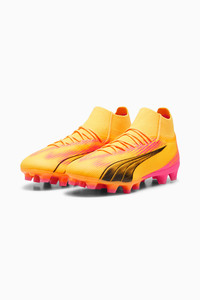 PRODUCT STORY Just when they think you couldn’t get any faster – you do. With its lightweight mesh, reinforced with a thin layer of GripControl skin for stability, support, and ball sensation, ULTRA PRO takes its signature speed and acceleration to the next level. The TPU SPEEDPLATE makes it official: ULTRA is Too Fast for Them. FEATURES & BENEFITS - The upper of the shoes is made with at least 30% recycled materials DETAILS - Style: 107750_03 - Color: Sun Stream-PUMA Black-Sunset Glow - Lightweight mesh upper - GripControl skin for decisive command over the ball - Knitted high-cut collar for a snug fit around the ankle - TPU SPEEDPLATE outsole for optimal traction and propulsion - Suitable for use on both firm natural surfaces and artificial grass (4G) - Regular to narrow fit - Mid-cut boot - FG/AG: Frim ground/Artificial ground outsole MATERIAL INFORMATION - Sockliner: 100% Textile - Outsole: 100% Synthetic - Upper: 76.58% Synthetic, 23.42% Textile - Lining: 70.21% Textile, 29.79% Synthetic
