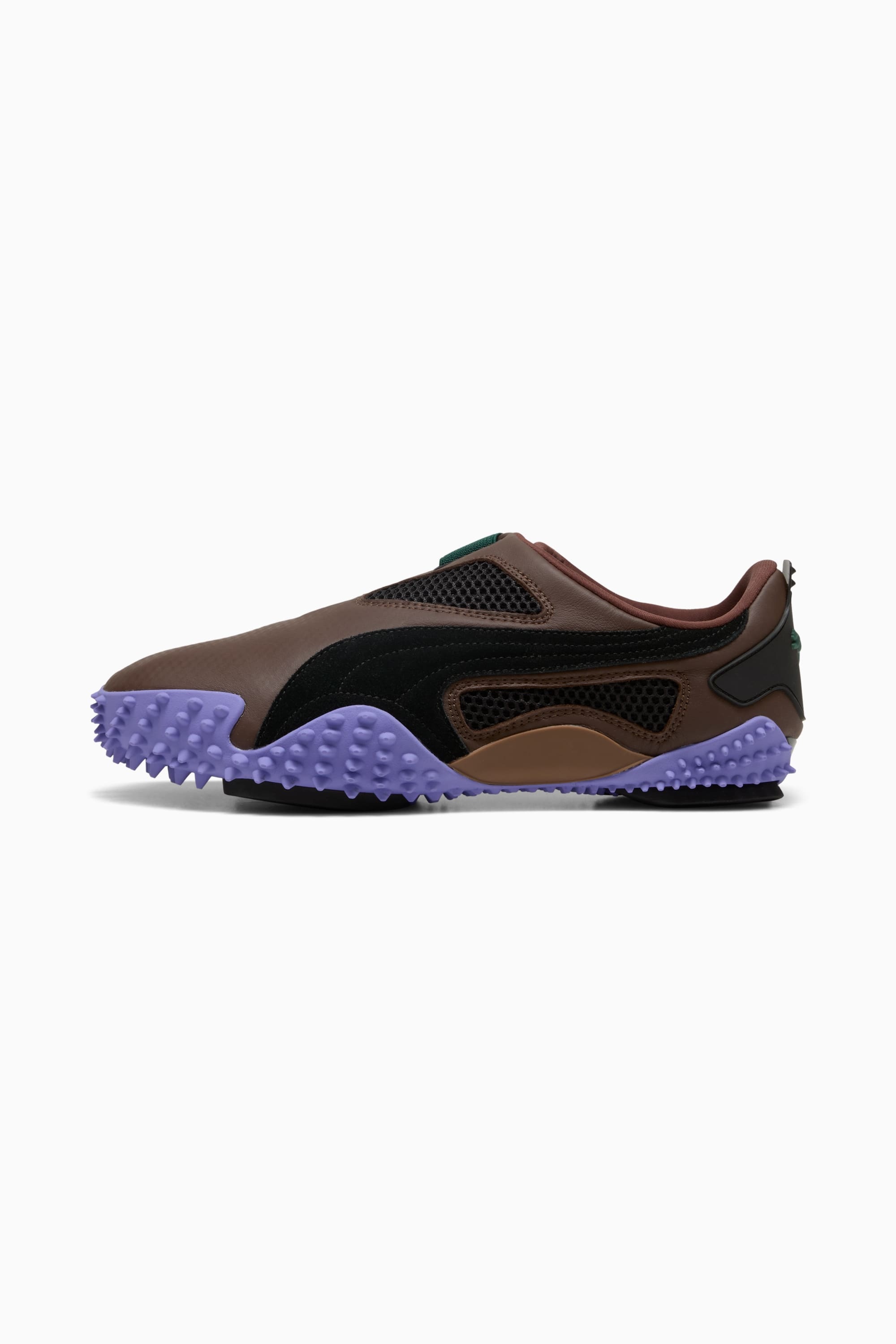 PRODUCT STORY First released in 1999, the Mostro has become one of PUMA's best-selling shoes ever. Affectionally named after the Italian word for "monster", it was originally inspired by two sports shoes – a sprinting spike from 1968 and a surfing shoe from the 80s. For those who dare to be bold, this latest version takes its name from the German prefix "Ur" which means something old or original. It has a somewhat more aggressive look with slightly longer spikes and a open mesh upper. DETAILS - Style: 401719_03 - Color: Haute Coffee-PUMA Black - Regular width - Soft leather upper with mesh cut outs - Elasticated hook-and-loop closure - OrthoLite® moulded sockliner - Rubber outsole with spike design - PUMA branding details MATERIAL INFORMATION - Sockliner: 100% Textile - Outsole: 60% Rubber, 40% Synthetic - Upper: 78.65% Leather - cow, 12.66% Textile, 8.69% Synthetic - Lining: 100% Textile