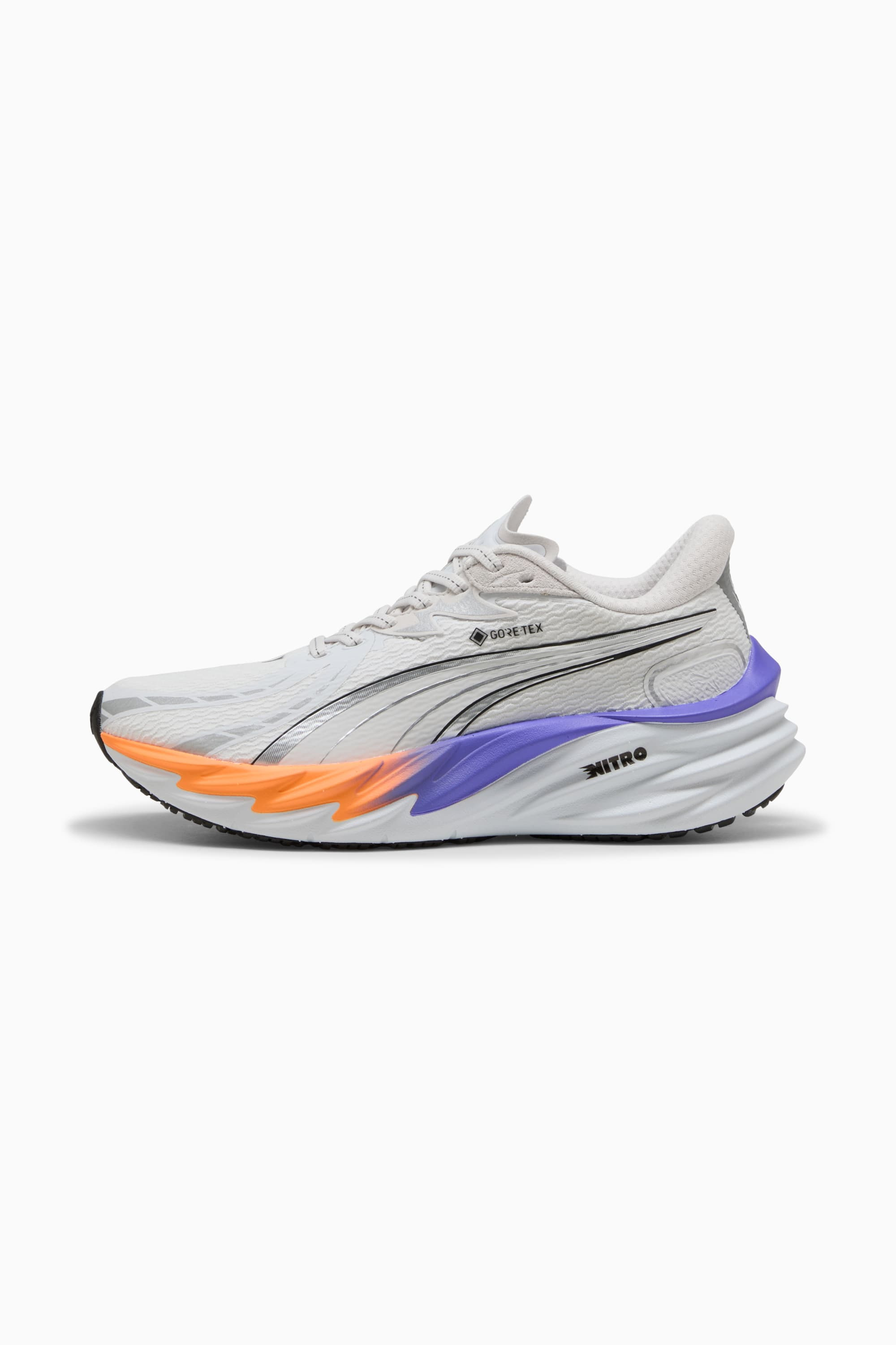 PRODUCT STORY Running feels different for everyone – and that’s exactly how it should be. Whether you’re chasing a PR or just chasing the feeling, Velocity 4 is built to move with you. Any runner, any time, any distance, it can withstand, deliver, and surpass expectations. This version is equipped with a GTX Invisible FIT waterproof, windproof, and breathable membrane to keep you dry on the go. Plus, a full-length NITROFOAM™ midsole for cushioning and PUMAGRIP outsole for the best traction in the game. FEATURES & BENEFITS - GORE-TEX: Waterproof membrane that keeps your feet dry and warm while still providing optimum breathability. - NITROFOAM™: Innovative nitrogen-infused foam technology that uses premium raw materials to provide maximum energy return - PUMAGRIP: Outsole is made of durable rubber compound for multi-surface traction DETAILS - Style: 311146_02 - Color: Feather Gray-Dark Amethyst - Regular fit - Rounded toe - Lace closure - Heel type: Flat - Heel-to-toe drop: 10.0cm - Cushioning: Medium - Stack height: 36mm / 26mm - Pronation: Neutral MATERIAL INFORMATION - Sockliner: 100% Textile - Outsole: 100% Rubber - Upper: 49.22% Synthetic, 47.97% Textile, 2.81% Leather - cow - Lining: 100% Textile