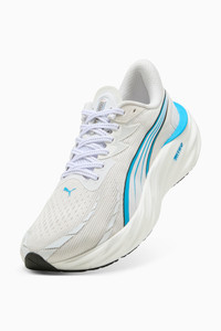 PRODUCT STORY Running feels different for everyone – and that's exactly how it should be. Whether you're chasing a personal record or just chasing the feeling, Velocity 4 is built to move with you. Any runner, any time, any distance, it can endure, perform, and exceed expectations. Our lightest Velocity yet features a full-length NITROFOAM™ midsole, improved breathability with new mesh in the upper, and a PUMAGRIP outsole for the best traction in the game. FEATURES & BENEFITS - BREATHABILITY: Premium engineered knit material engineered for breathability and stretch, reinforced with PWRTAPE for durability and lockdown - NITROFOAM™: Innovative nitrogen-infused foam technology that uses premium raw materials to provide maximum energy return - PUMAGRIP: Outsole is made of durable rubber compound for multi-surface traction - The upper of the shoes is made with at least 30% recycled materials. DETAILS - Style: 311140_03 - Color: PUMA White-Speed Blue - Fit: Regular - Toe type: Rounded - Fastener: Laces - Heel type: Flat - Heel-to-toe drop: 10mm - Stack height 36mm / 26mm - Recommended for: neutral pronators MATERIAL INFORMATION - Sockliner: 100% Textile - Outsole: 100% Rubber - Upper: 59.73% Textile, 37.40% Synthetic, 2.87% Leather - cow - Lining: 100% Textile