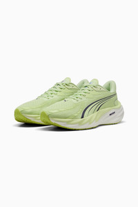 PRODUCT STORY Running feels different for everyone – and that's exactly how it should be. Whether you're chasing a personal record or just chasing the feeling, Velocity 4 is built to move with you. Any runner, any time, any distance, it can endure, perform, and exceed expectations. Our lightest Velocity yet features a full-length NITROFOAM™ midsole, improved breathability with new mesh in the upper, and a PUMAGRIP outsole for the best traction in the game. FEATURES & BENEFITS - BREATHABILITY: Premium engineered knit material engineered for breathability and stretch, reinforced with PWRTAPE for durability and lockdown - NITROFOAM™: Innovative nitrogen-infused foam technology that uses premium raw materials to provide maximum energy return - PUMAGRIP: Outsole is made of durable rubber compound for multi-surface traction - The upper of the shoes is made with at least 30% recycled materials. DETAILS - Style: 311140_16 - Color: Apple Spritz-Lux Lime - Fit: Regular - Toe type: Rounded - Fastener: Laces - Heel type: Flat - Heel-to-toe drop: 10mm - Stack height 36mm / 26mm - Recommended for: neutral pronators MATERIAL INFORMATION - Sockliner: 100% Textile - Outsole: 100% Rubber - Upper: 59.73% Textile, 37.40% Synthetic, 2.87% Leather - cow - Lining: 100% Textile