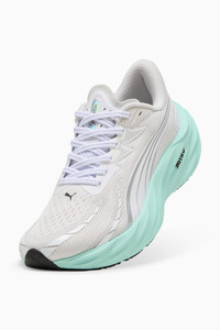 PRODUCT STORY Running feels different for everyone – and that's exactly how it should be. Whether you're chasing a personal record or just chasing the feeling, Velocity 4 is built to move with you. Any runner, any time, any distance, it can withstand, deliver, and exceed expectations. Our lightest Velocity yet, it features a full-length NITROFOAM™ midsole, improved breathability thanks to new mesh on the upper, and a PUMAGRIP outsole for the best traction in the game. FEATURES & BENEFITS - BREATHABILITY: Premium engineered knit material engineered for breathability and stretch, reinforced with PWRTAPE for durability and lockdown - NITROFOAM™: Innovative nitrogen-infused foam technology that uses premium raw materials to provide maximum energy return - PUMAGRIP: Outsole is made of durable rubber compound for multi-surface traction - The upper of the shoes is made with at least 30% recycled materials. DETAILS - Style: 311141_05 - Color: PUMA White-Mint Melt - Fit: Regular - Toe type: Rounded - Fastener: Laces - Heel type: Flat - Heel-to-toe drop: 10mm - Stack height 36mm / 26mm - Recommended for: neutral pronators MATERIAL INFORMATION - Sockliner: 100% Textile - Outsole: 100% Rubber - Upper: 59.73% Textile, 37.40% Synthetic, 2.87% Leather - cow - Lining: 100% Textile