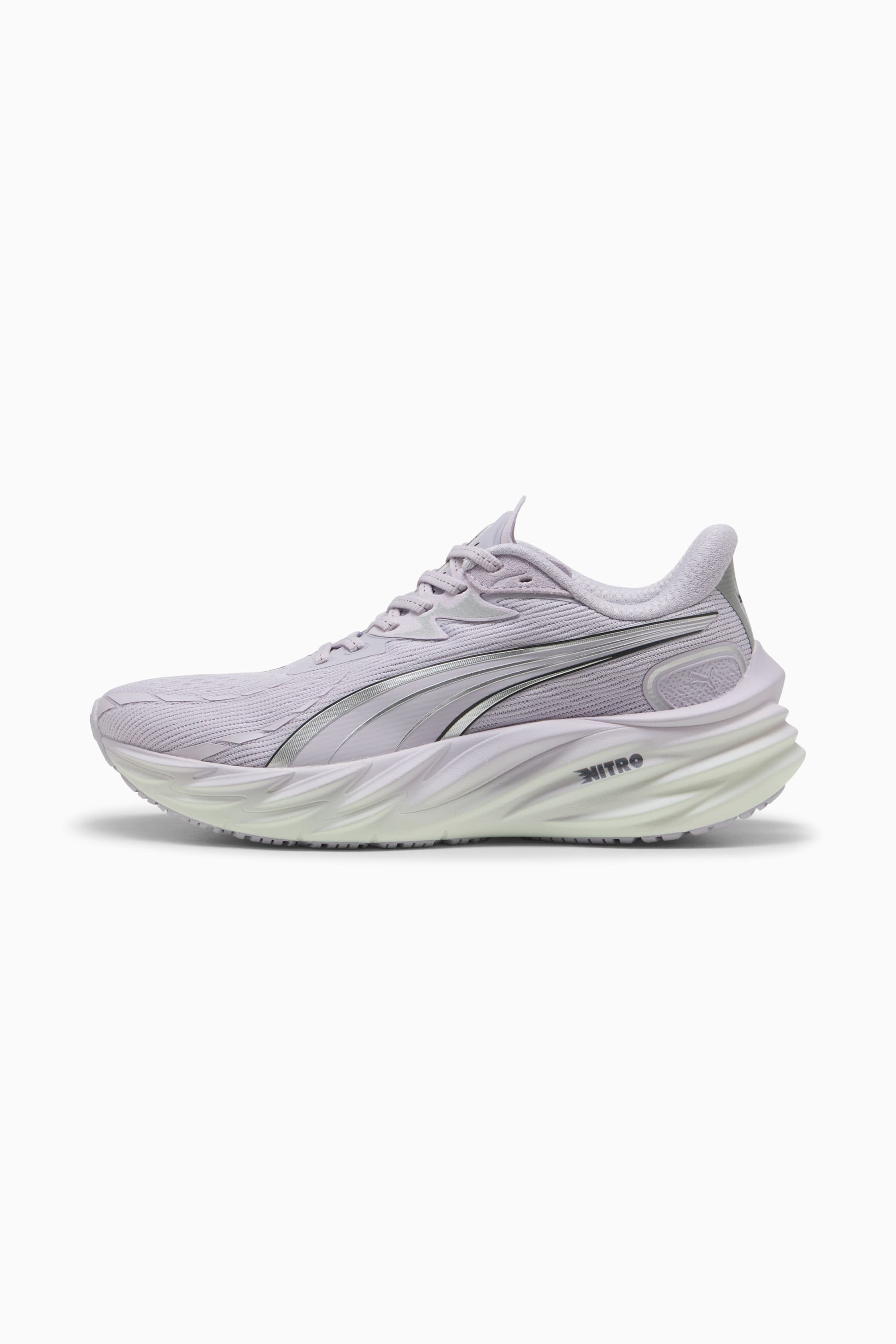 PRODUCT STORY Running feels different for everyone – and that's exactly how it should be. Whether you're chasing a personal record or just chasing the feeling, Velocity 4 is built to move with you. Any runner, any time, any distance, it can withstand, deliver, and exceed expectations. Our lightest Velocity yet, it features a full-length NITROFOAM™ midsole, improved breathability thanks to new mesh on the upper, and a PUMAGRIP outsole for the best traction in the game. FEATURES & BENEFITS - BREATHABILITY: Premium engineered knit material engineered for breathability and stretch, reinforced with PWRTAPE for durability and lockdown - NITROFOAM™: Innovative nitrogen-infused foam technology that uses premium raw materials to provide maximum energy return - PUMAGRIP: Outsole is made of durable rubber compound for multi-surface traction - The upper of the shoes is made with at least 30% recycled materials. DETAILS - Style: 311141_11 - Color: Lilac Crush-Sage Frost - Fit: Regular - Toe type: Rounded - Fastener: Laces - Heel type: Flat - Heel-to-toe drop: 10mm - Stack height 36mm / 26mm - Recommended for: neutral pronators MATERIAL INFORMATION - Sockliner: 100% Textile - Outsole: 100% Rubber - Upper: 59.73% Textile, 37.40% Synthetic, 2.87% Leather - cow - Lining: 100% Textile