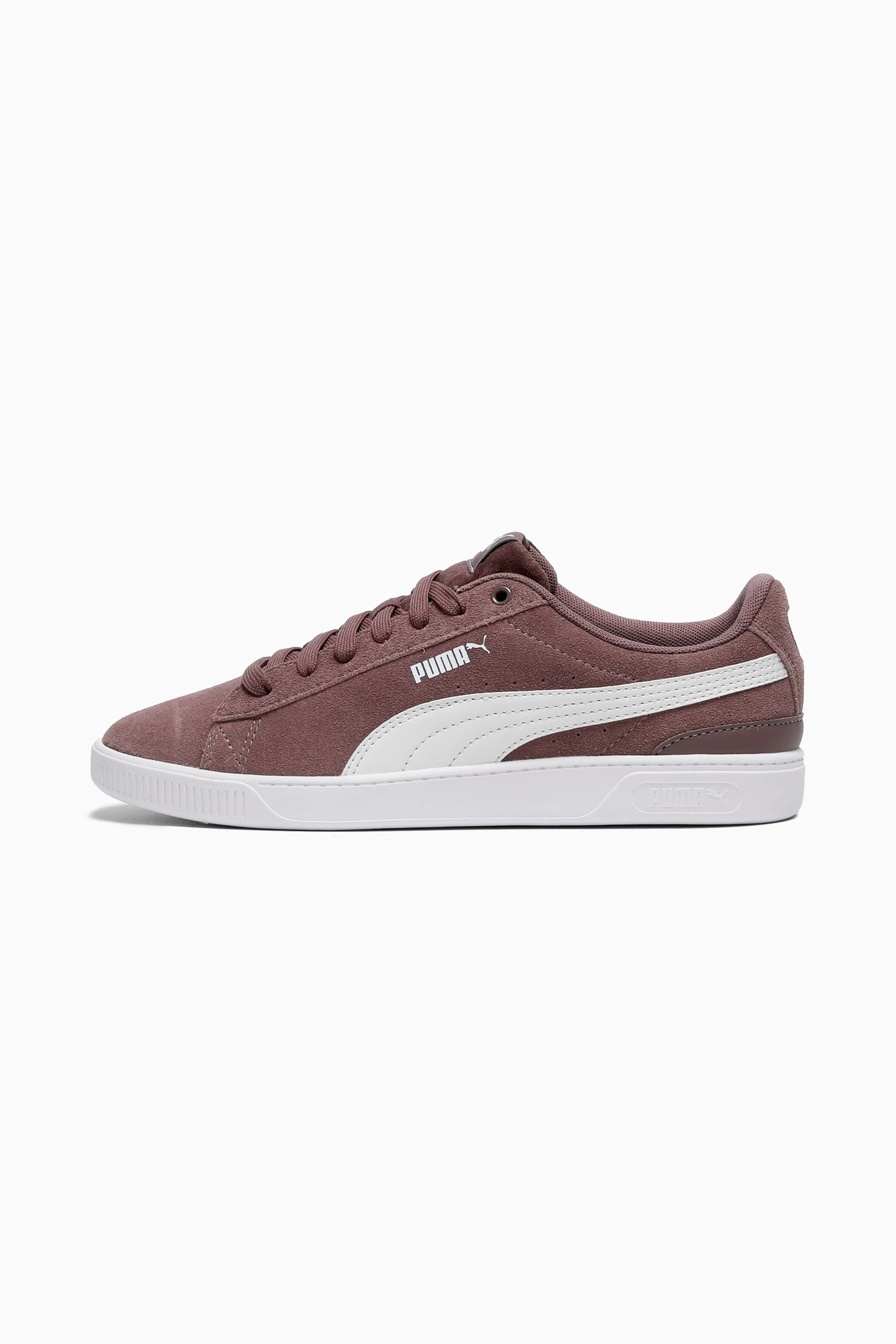 Sleek, smooth and understated, on-point design are the hallmarks of the Vikky. We've revamped this familiar silhouette with modern tooling on the cupsole, while retaining the minimalist lines and classic branding of previous models. Our SoftFoam+ sockliner adds optimal cushioning to make these an absolutely unbeatable everyday shoe. FEATURES & BENEFITS - SoftFoam+: PUMA's comfort sockliner for instant step-in and long-lasting comfort that provides soft cushioning every step of your day DETAILS - Style: 383023_29 - Color: Raisin-PUMA White-Alpine Snow - Low boot - Suede upper - SoftFoam+ sockliner - Rubber cupsole - Lace closure - PUMA Formstrip at lateral side - Label with PUMA No. 1 Logo at tongue - PUMA No. 2 Logo at lateral side MATERIAL INFORMATION - Sockliner: 100% Textile - Outsole: 100% Rubber - Upper: 74.06% Leather - cow, 23.28% Synthetic, 2.66% Textile - Lining: 100% Textile