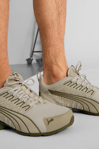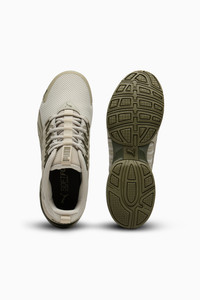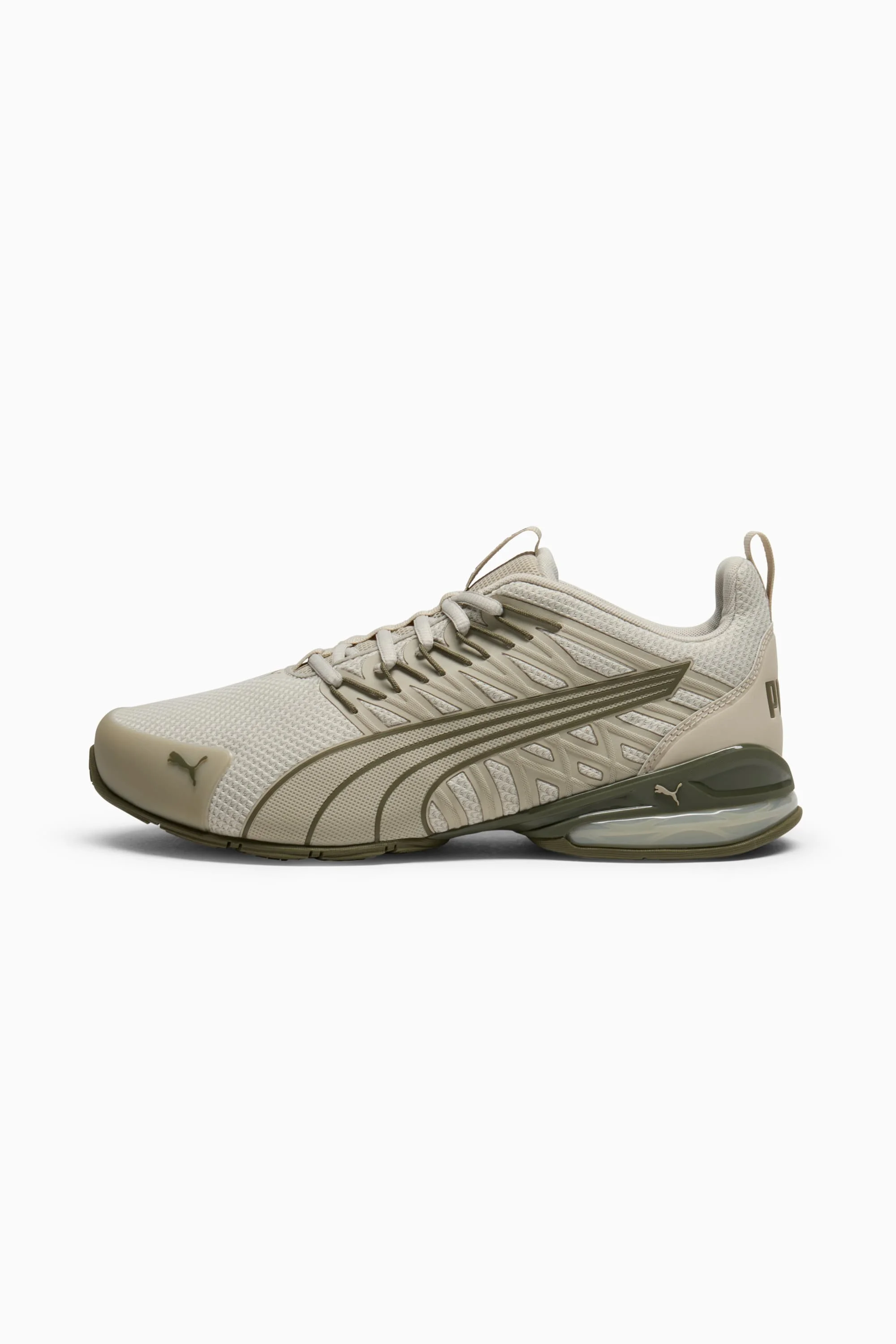 PRODUCT STORY The all-new Voltaic Evo is designed for the runner who wants comfort and traction without sacrificing style. The Voltaic features a midsole with PUMA's 10 Cell technology and an outsole designed with full length rubber coverage. It's time to get outside. This rendition features a wide construction. FEATURES & BENEFITS - The upper of the shoes is made with at least 20% recycled materials. - UPPER FRESH MATERIALIZATION Textured materials and premium material mix. - TPU TOE CAP provides style and durability - CAGE OVERLAY detail and unique lace feature is showcased on both lateral and medial sides. DETAILS - Style: 310727_07 - Color: Desert Dust-Loden Green - Rubber outsole - Lace closure - Low boot - SoftFoam+ Optimal step-in, long-lasting comfort for a plush, seamless ride - Midsole: 10 cell and TPU shank - Upper: Textured materials and premium material mix MATERIAL INFORMATION - Midsole: 100% Synthetic - Sockliner: 100% Textile - Outsole: 100% Rubber - Upper: 66.20% Synthetic, 33.80% Textile - Lining: 100% Textile