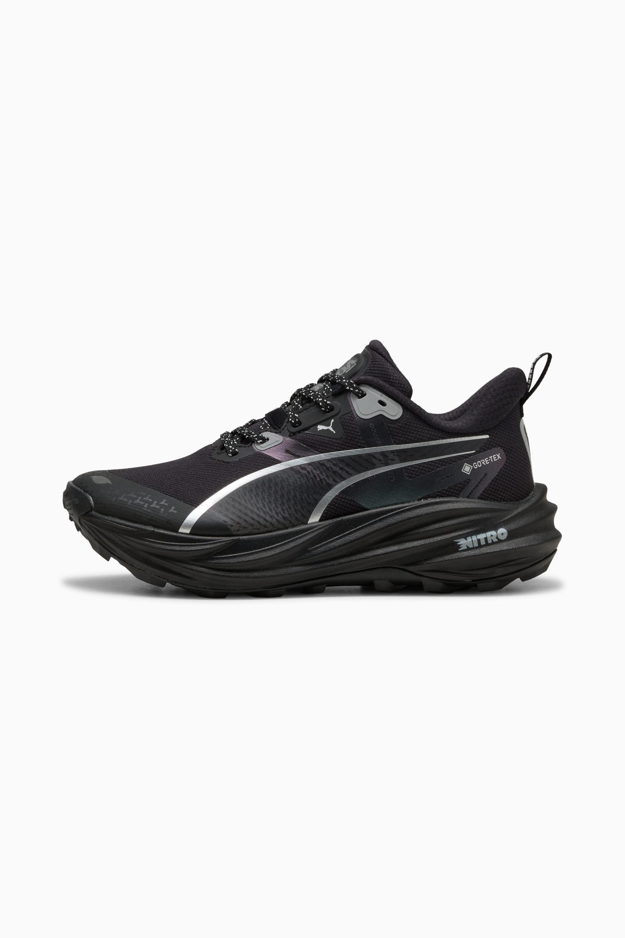 PRODUCT STORY Wherever the trail leads, Voyage 4 will be ready. This trail running shoe is designed with a structured yet breathable upper with PWRTAPE reinforcement for a secure lockdown, plus a NITROFOAM™ midsole for a cushioned running experience for long days on the trail. The durable PUMAGRIP ATR rubber provides multi-directional traction and grip for steep ascents and varying conditions. FEATURES & BENEFITS - NITROFOAM™: Advanced nitrogen-injected foam designed to provide superior responsiveness and cushioning in a lightweight package - PUMAGRIP ATR: Outsole is made of our most durable rubber for grip on varying terrains - BREATHABILITY: Premium engineered knit material engineered for breathability and stretch, reinforced with PWRTAPE for durability and lockdown DETAILS - Style: 311044_01 - Color: PUMA Black-PUMA Silver - Regular fit - Rounded toe - Closure: Laces - Heel type: Flat - Heel-to-toe drop: 6mm - Stack height: 38mm / 32mm - Pronation: Neutral