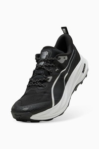 PRODUCT STORY Wherever the trail takes you, the Voyage NITRO™ 4 is ready. This trail running shoe features a structured yet breathable upper with PWRTAPE reinforcement for a secure fit, along with a NITROFOAM™ midsole for a cushioned and protective running experience during long days on the trail. The durable PUMAGRIP ATR rubber offers multi-directional traction and grip for steep climbs and changing conditions. FEATURES & BENEFITS - NITROFOAM™: Innovative nitrogen-infused foam technology that uses premium raw materials to provide maximum energy return - PUMAGRIP ATR: Outsole is made of our most durable rubber for best-in-class grip on varying terrains - BREATHABILITY: Premium engineered knit material engineered for breathability and stretch, reinforced with PWRTAPE for durability and lockdown - The upper of the shoes is made with at least 30% recycled materials. DETAILS - Style: 311041_01 - Color: PUMA Black-PUMA Silver - Fit: Regular - Toe Type: Rounded - Fastener: Laces - Heel type: Flat - Heel-to-toe drop: 6mm - Stack Height: 38mm / 32mm - Recommended for neutral pronators MATERIAL INFORMATION - Sockliner: 100% Textile - Outsole: 100% Rubber - Upper: 51.50% Synthetic, 48.50% Textile - Lining: 100% Textile