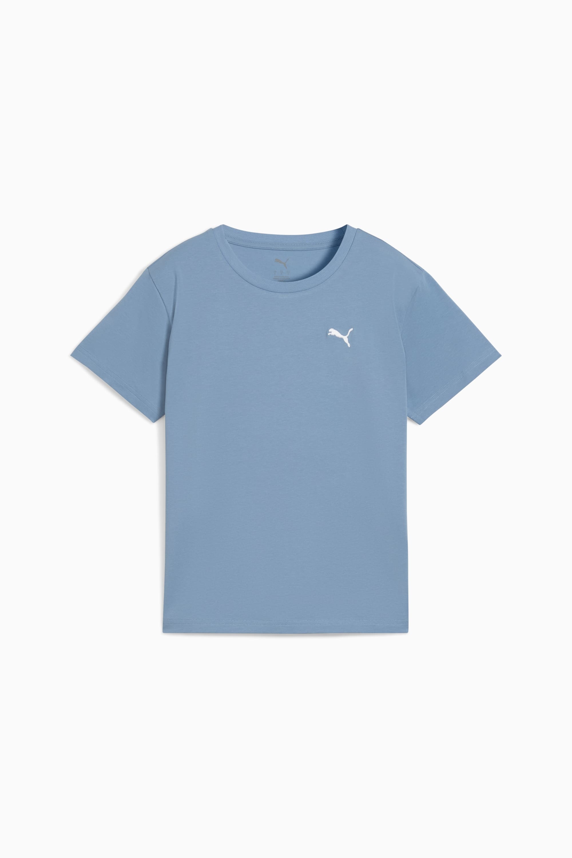 PRODUCT STORY Make mornings simple with PUMA's Wardrobe Essentials. These are your go-tos for busy days. Combining retro vibes with a modern edge, these versatile pieces will keep you comfortable and looking great, no matter where the day takes you. DETAILS - Style: 632043_34 - Color: Cool Blue - Fit: Comfortable straight fit - Main material: Single jersey - Neck: Crew neck - Ribbed neckline - Short sleeves - Length: Regular MATERIAL INFORMATION - Shell: 95% cotton, 5% elastane - Rib: 80% cotton, 20% polyester