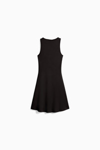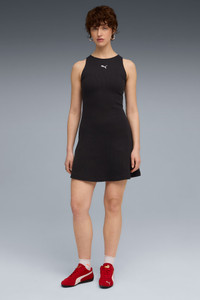 PRODUCT STORY Make mornings simple with PUMA's Wardrobe Essentials. These are your go-to pieces for busy days. Combining retro vibes with a modern edge, these versatile styles will keep you comfortable and looking great, no matter where your day takes you. FEATURES & BENEFITS - Made with at least 30% recycled materials. DETAILS - Style: 632049_01 - Color: PUMA Black - Fit: Slim - Main material: Rib - Sleeveless - Fitted waist - Length: Short - A-line cut