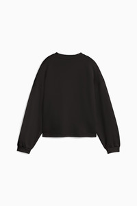 PRODUCT STORY Start your day effortlessly with PUMA's Wardrobe Essentials. These are your go-to pieces for busy days. Combining retro vibes with a modern edge, these versatile items will keep you comfortable and stylish, no matter where your day takes you. FEATURES & BENEFITS - Made with at least 20% recycled materials. DETAILS - Style: 632050_01 - Color: PUMA Black - Fit: Oversized - Main material: Spacer - Neck: Crew neck - Long sleeves - Side slit at the waist on both sides - Length: Short, back slightly longer than front MATERIAL INFORMATION - Shell: 77% cotton, 23% polyester