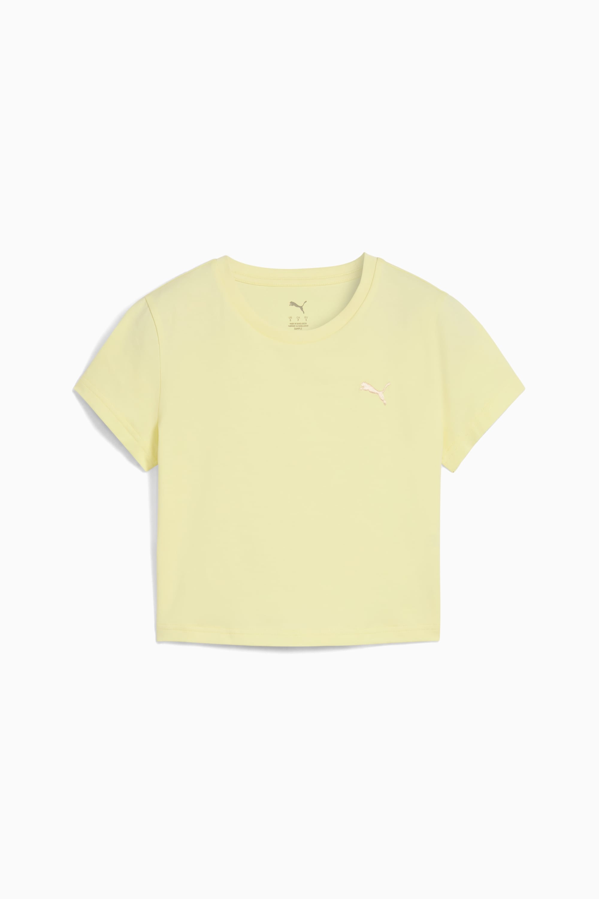 PRODUCT STORY Step up your casual game with this baby tee. With subtle details, it's perfect for those who love to keep it simple yet striking. Own your style with PUMA and make every day unforgettable. DETAILS - Style: 629745_92 - Color: Gold Moon - Slim fit - Single jersey fabric - Cropped length - Crew neck - Short sleeves - PUMA branding details MATERIAL INFORMATION - Shell: 95% cotton, 5% elastane - Rib: 80% cotton, 20% polyester