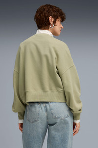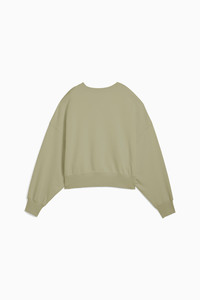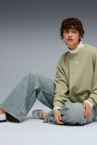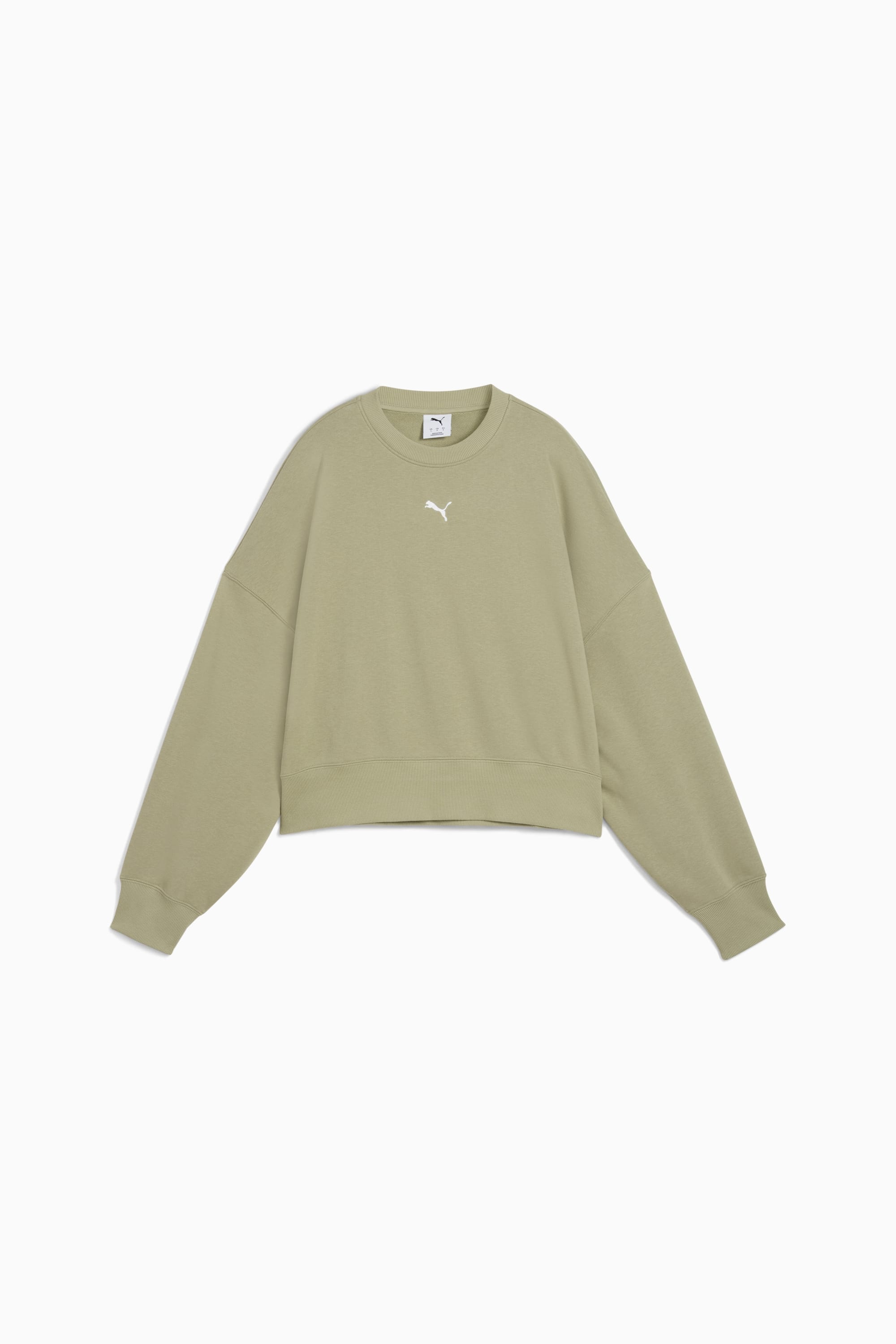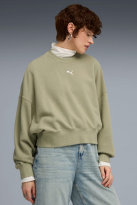 PRODUCT STORY Step into effortless style with this PUMA crew. Featuring a centered logo, ribbed cuffs, and a rounded waistband, it's perfect for any laid-back day. The oversized fit adds a touch of casual cool, making it your new go-to essential. FEATURES & BENEFITS - Made with at least 30% recycled materials DETAILS - Style: 629748_82 - Color: Lux Army - Oversized fit - French Terry fabric - Short length - Crew neck - Long sleeves - PUMA branding details MATERIAL INFORMATION - Shell: 68% cotton, 32% polyester - Rib: 96% cotton, 4% elastane