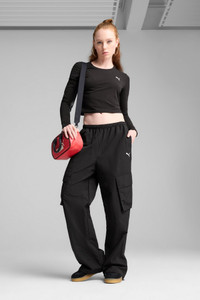 PRODUCT STORY Unleash your adventurous spirit with PUMA's relaxed woven cargo pants. Featuring an elasticated waistband, cargo pockets, and customisable drawcords, these pants blend functionality with a sleek look. Perfect for those who seek versatility in their style. FEATURES & BENEFITS - Made with 100% recycled material excluding trims & decorations DETAILS - Style: 629756_01 - Color: PUMA Black - Relaxed fit - Plain weave fabric - Regular length - Cargo Pocket - PUMA branding details MATERIAL INFORMATION - UPPER POCKET BAG: 100% polyester - SHELL: 100% nylon